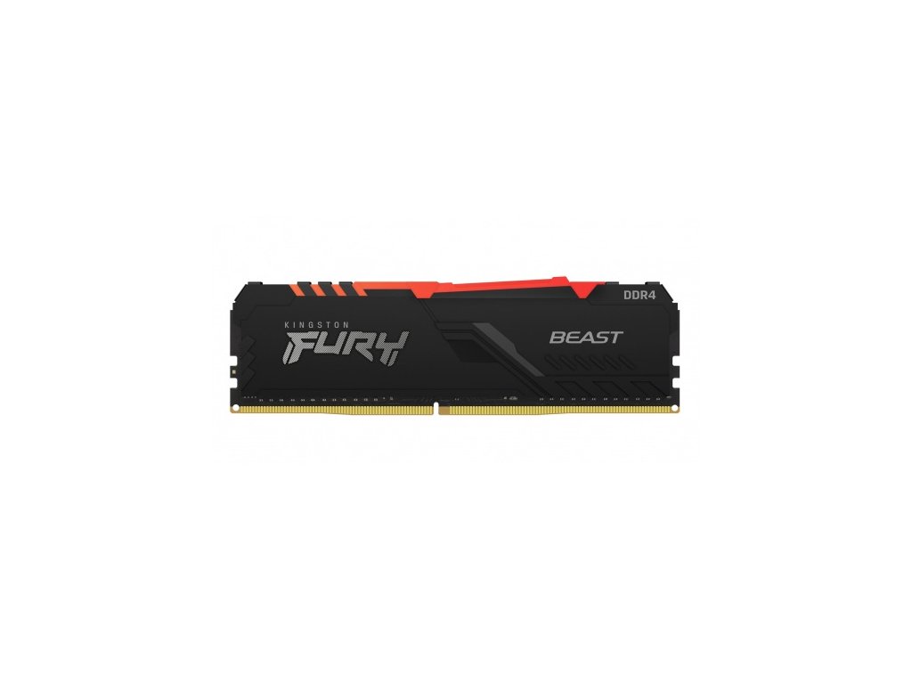 Paměť Kingston FURY Beast DDR4 RGB přináší vyšší výkon a styl s rychlostmi až 3733 MHz, agresivním designem a RGB podsvícením po celé délce modulu, které zajišťuje plynulé a ohromující efekty.Model: Kingston Fury Beast RGB KF436C18BB2A/16
