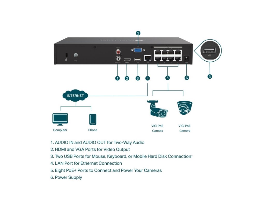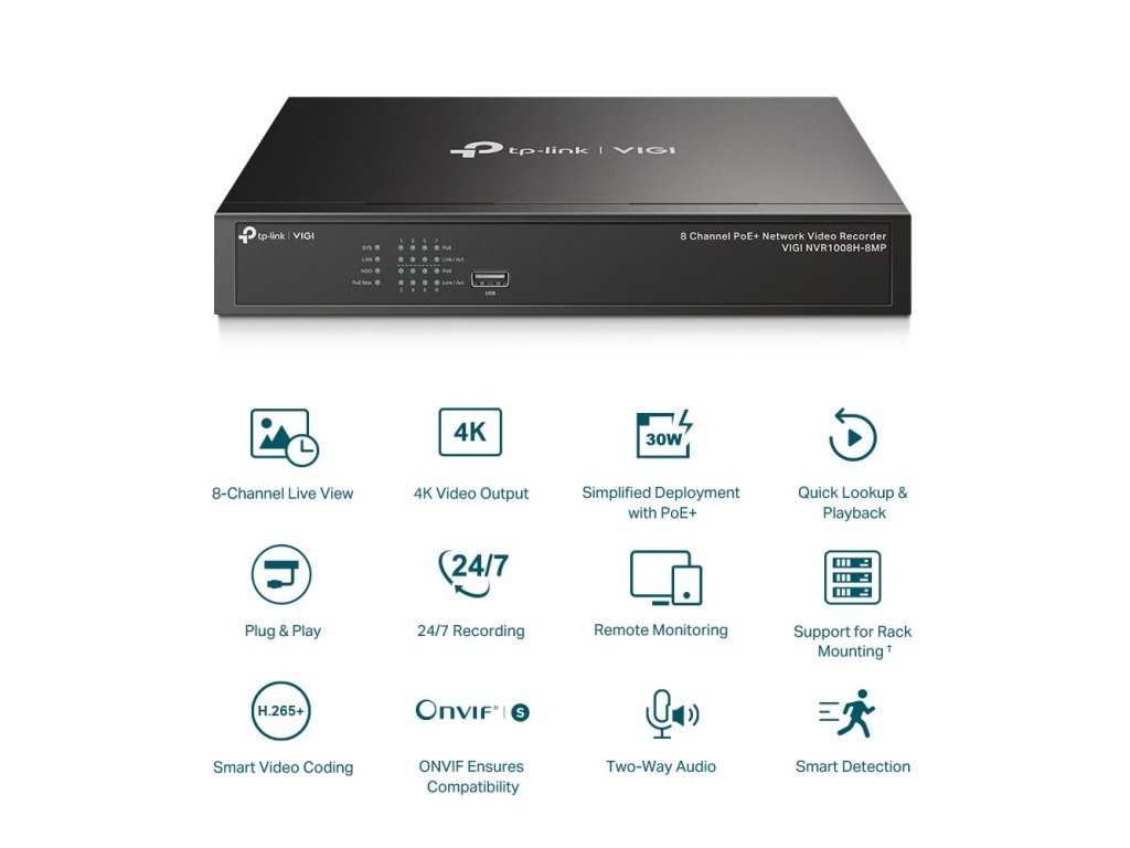 VIGI NVR1008H-8MPVIGI 8kanálový PoE+ sieťový videorekordér
