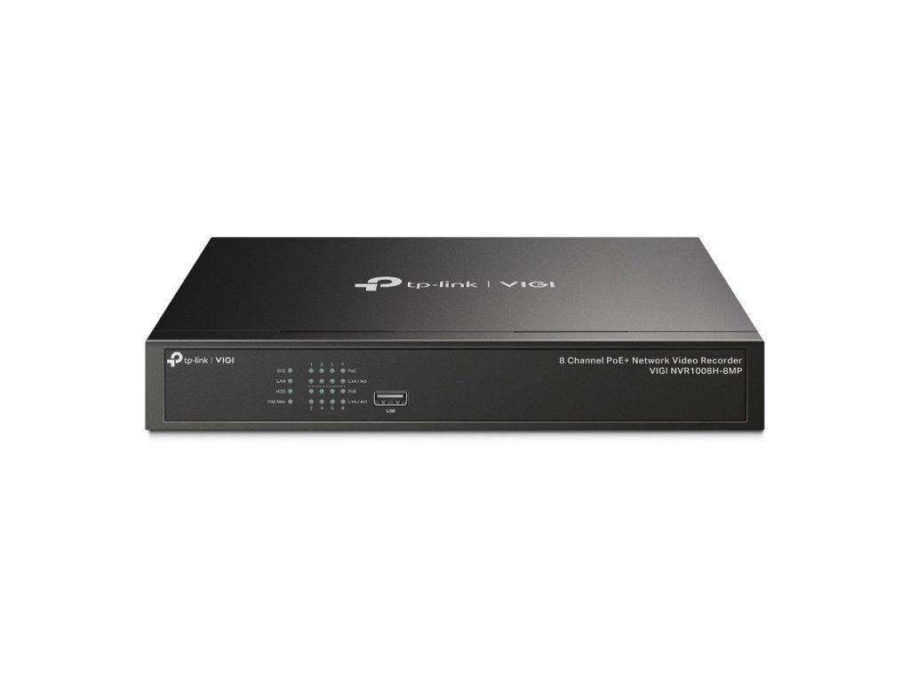 TP-Link VIGI NVR1008H-8MP VIGI 8kanálový PoE+ síťový videorekordér * 4K HDMI video výstup a 16MP dekódovací kapacita: ostré rozlišení obrazu až 8MP a 8kanálový displej zajistí, že zachytíte každý detail z každého úhlu. * Zjednodušené nasazení s PoE+: snadno připojte a napájejte PoE kameru pomocí jednoho kabelu RJ45, který přenáší data i napájení. Není potřeba žádný napájecí adaptér. * 8-kanálové simultánní přehrávání: přehrávejte záznam až z 8 kamer současně, zvyšte rychlost přehrávání a vyhledejte události v plánu videa, abyste si mohli snadno prohlédnout záznam. * H.265+: bez použití další šířky pásma přenáší vaše kamera komprimované křišťálově čisté video, čímž šetří místo na disku, snižuje zatížení sítě a náklady na monitorování, aniž by byla snížena kvalita obrazu. * Plug & Play: umožňuje automatické přidávání nových a nepoužitých IP kamer VIGI do nového NVR a okamžitou aktivaci. * Nepřetržité nahrávání 24/7: uloží až 10TB záznamu z připojených kamer pro zabezpečení vašich dat pro rychlý a pohodlný přístup. * Flexibilní instalace: vyberte si vhodný způsob instalace jednoduchým umístěním vašeho NVR do racku nebo jeho umístěním na stůl nebo pod stůl pro větší pohodlí. * Obousměrný zvuk: díky podpoře hlasového interkomu převádějte obousměrné konverzace a sledujte svůj kanál odkudkoli. Vhodné pro management.
