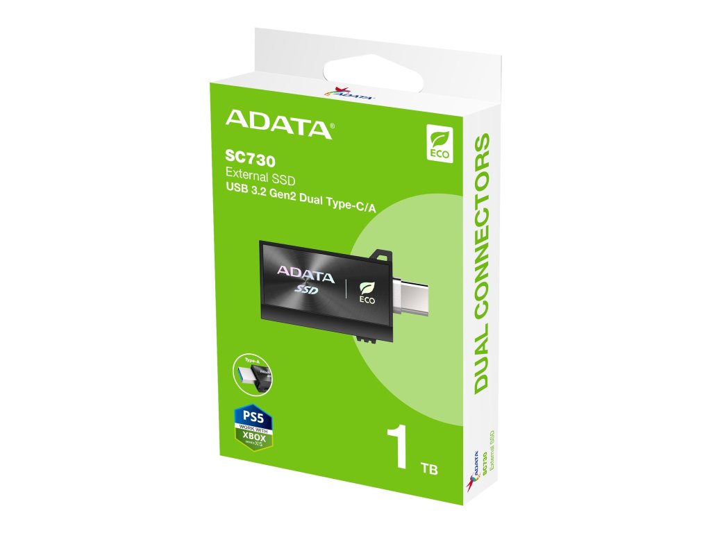 SC730 je maličký a lehoučký externí SSD disk s dvěma konektory, s kompaktním designem podobným USB flash disku. S rychlostí čtení/zápisu až 600 MB/s, což usnadňuje rozšíření úložiště v mobilních zařízeních. Model SC730 je také vyroben z 50 % z recyklovaného plastu a nabízí jednoduchý a ekologický design, což z něj činí ideální volbu pro mobilní úložiště. * Duální konektor USB A + USB C * Podporuje nejnovějších generaci herních konzolí (PS5, XBOX)Rozhraní: USB 3.2 Gen 2 (10Gbps) (zpětně kompatibilní s USB 2.0)