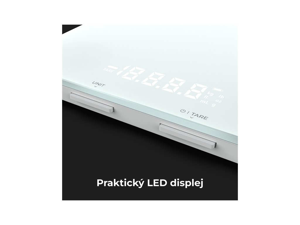 LED displej poskytuje jasne a lahko citatelne merania, vdaka comu pouzivatelia mozu jednoducho a presne odmerat ingrediencie.