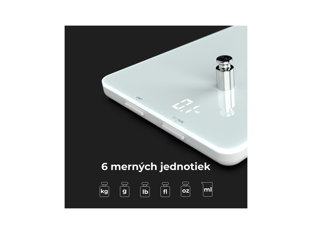 Inteligentna kuchynska vaha je navrhnuta s tenkym a lahkym dizajnom, vdaka ktoremu ju mozno lahko ulozit do skrinky, ked sa nepouziva.