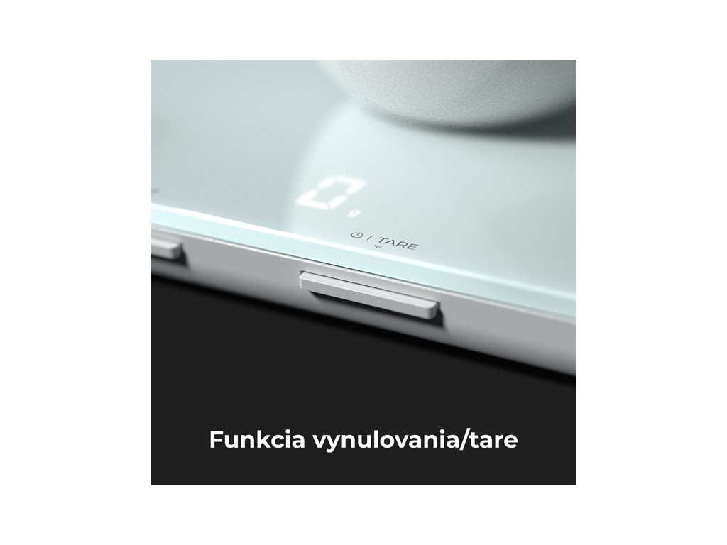 Funkcia tara umoznuje pouzivatelom vynulovat hmotnost vahy, co ulahcuje meranie viacerych zloziek v tej istej nadobe bez toho, aby ste ich museli prenasat do samostatnej misky alebo odmerky.