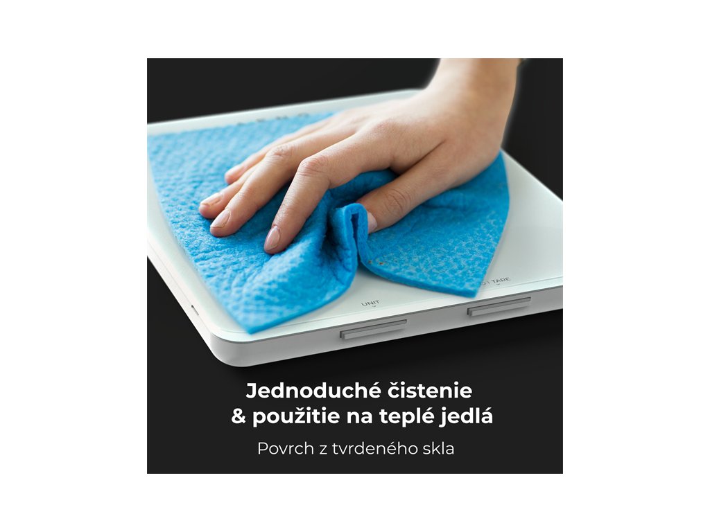 Povrch vahy z tvrdeneho skla sa nielen lahko utiera a cisti, ale je bezpecny aj pre horuce jedla. To znamena, ze pouzivatelia mozu vahu pouzivat na vazenie a meranie ingrediencii pre teple aj studene jedla bez toho, aby sa museli obavat poskodenia povrchu