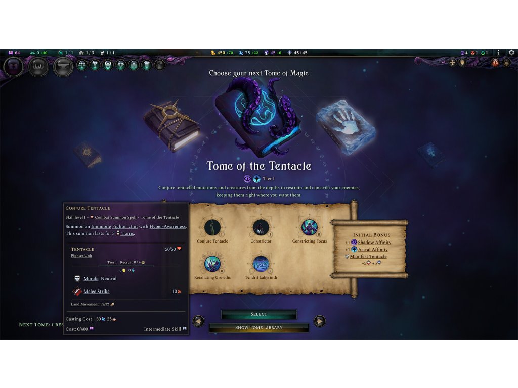 - Tome of the Tentacle: Specializes in using tentacles to immobilize and damage enemies. Grants the Constrictor, a unique racial unit with tentacles for arms.