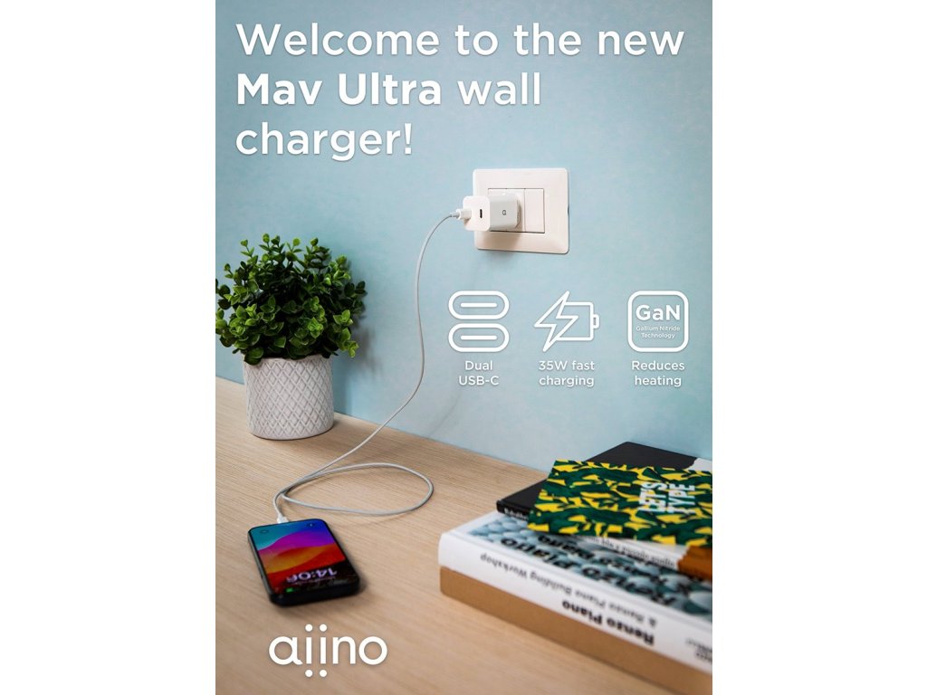 Aiino Mav Ultra 35W GaN wall charger with two USB-C ports