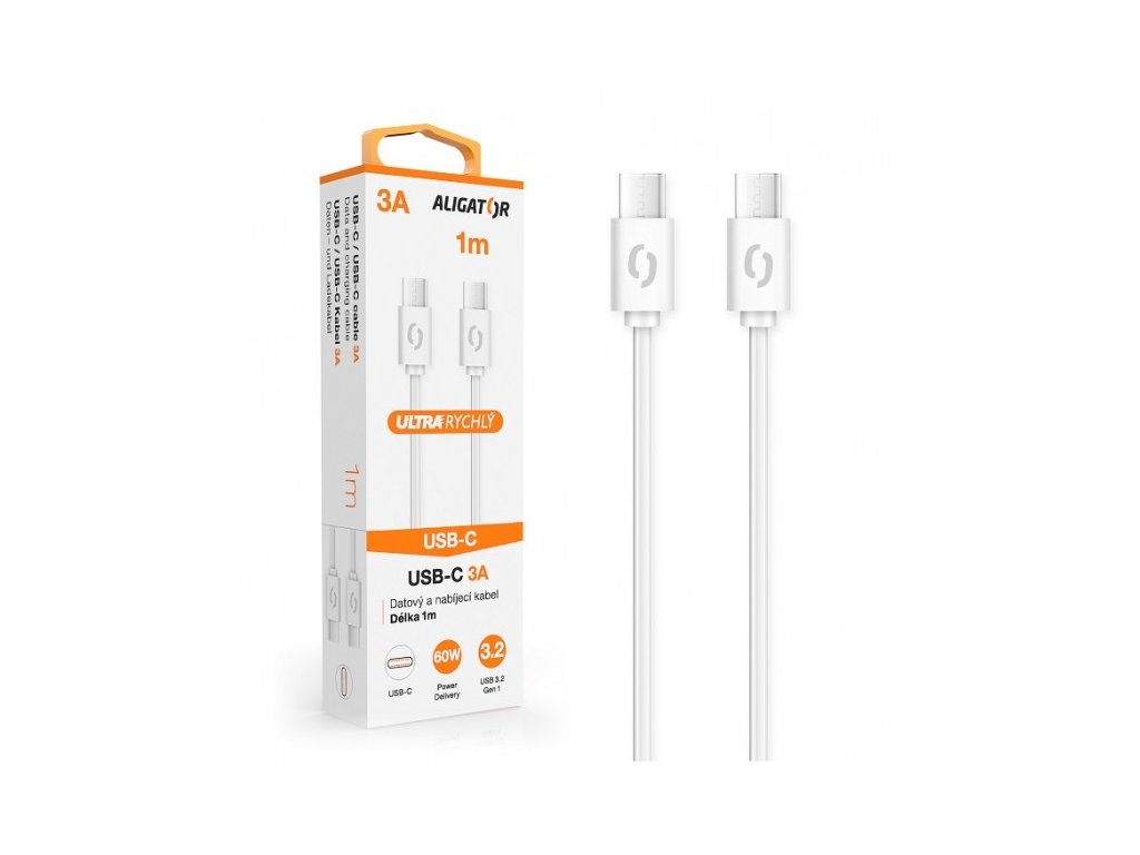 ALIGATOR Dátový kábel POWER 3A, USB-C/USB-C, biely