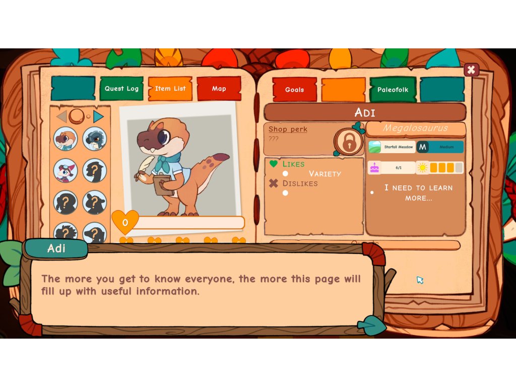 You’re tasked with running Amber Isle’s only shop. Gather, craft and sell items to meet the needs of your diverse Paleofolk customers. Does your brachiosaur buddy need a canvas as long as his neck? Maybe your microraptor amigo needs a mini-sized chair? Perhaps even some water-proof paper for a plesiosaur in peril? Different customers also have different needs, behaviours and preferences to learn. Haggle, pawn, and counter-offer your way to the top of the Shop Rankings! It’s up to you to run a successful shop to bring Amber Isle back from the brink of fossilisation!