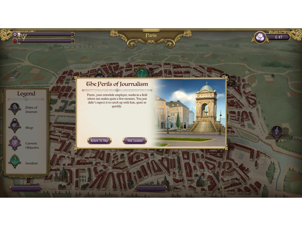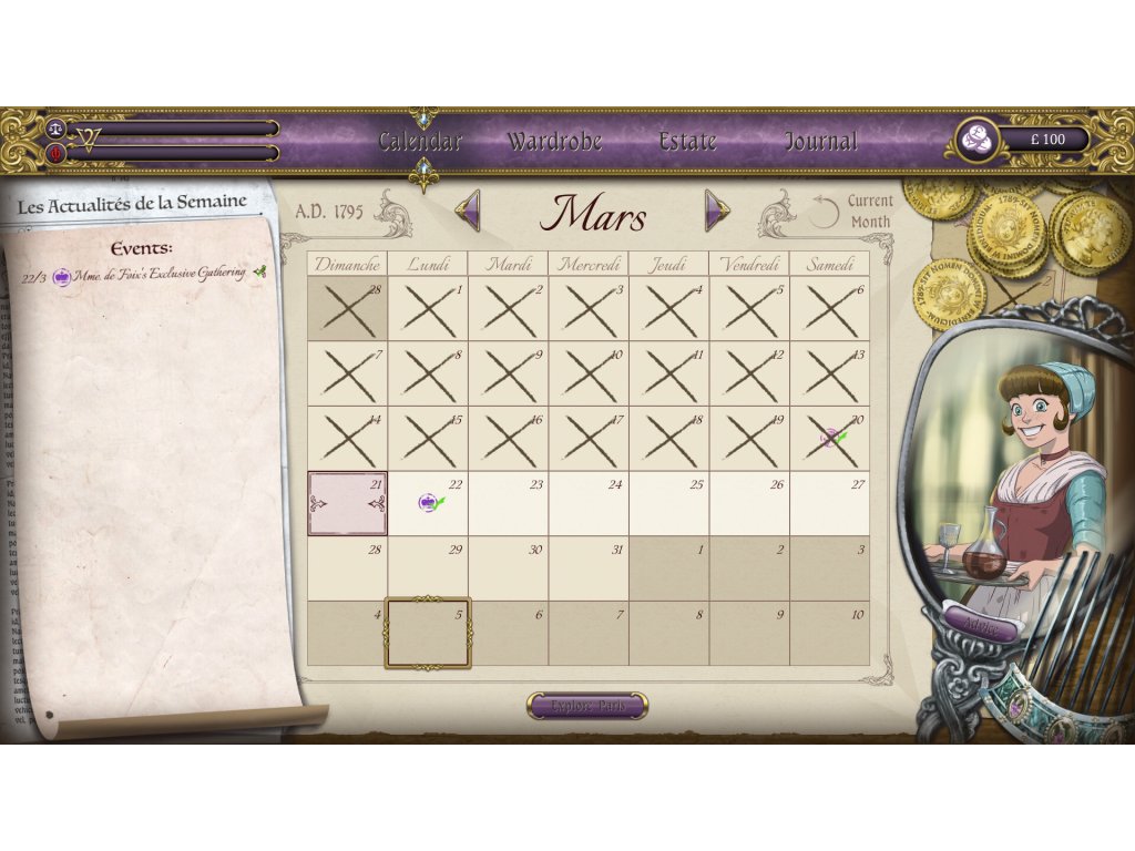 - Use your calendar to plan your commitments each week in Paris, and more importantly, who you do them with. In a city marching towards revolution, time is of the essence, and your enemies have agendas of their own!