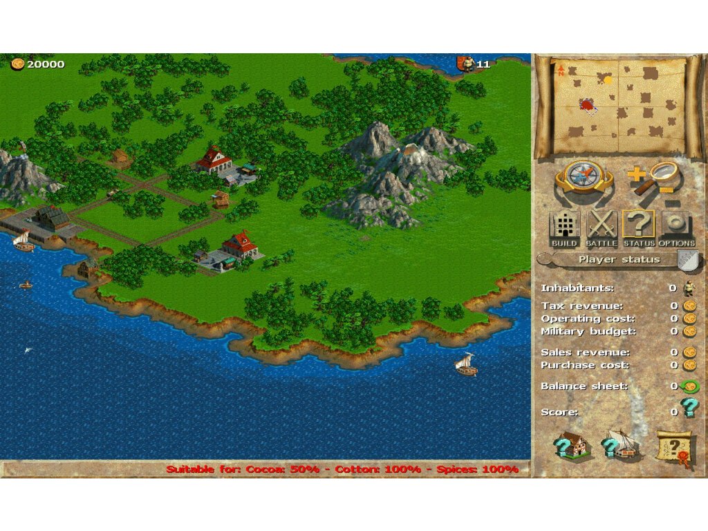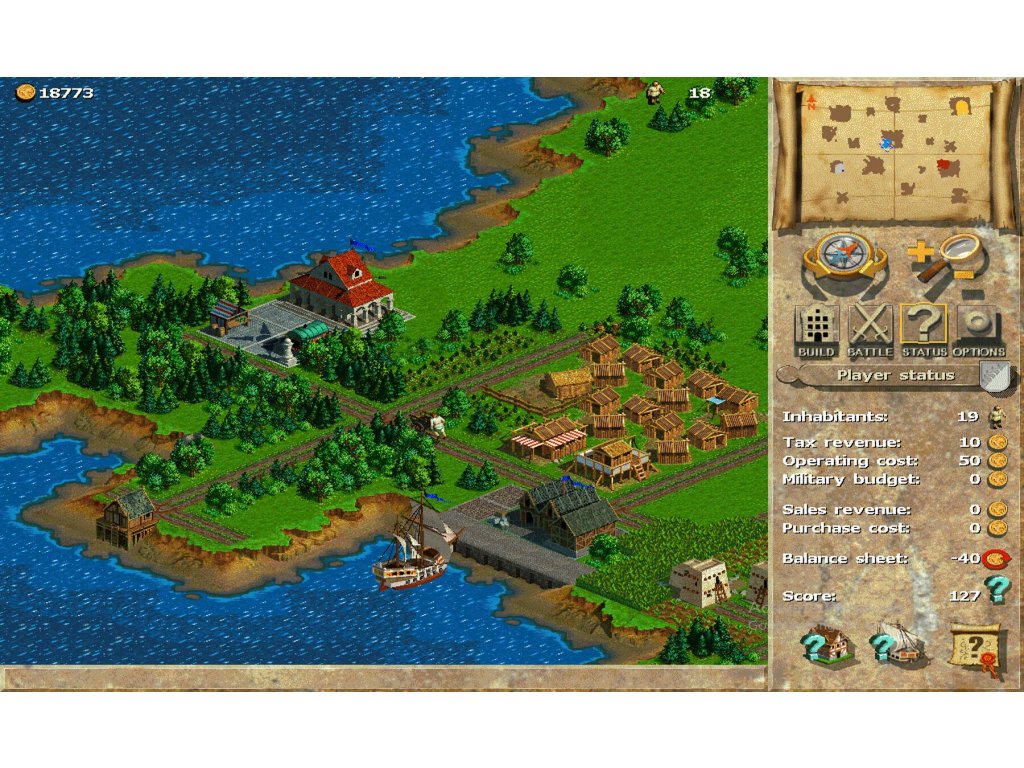 It is the year 1602 and you find yourself in command of a sailing vessel, navigating the waters of the uncharted island world of Anker. You have aboard your ship no more than an handful of trusty followers and a limited supply of food and building materials. You are here to begin a new life. As you select which island to settle, your future is already sealed, for each one has its own special characteristics.