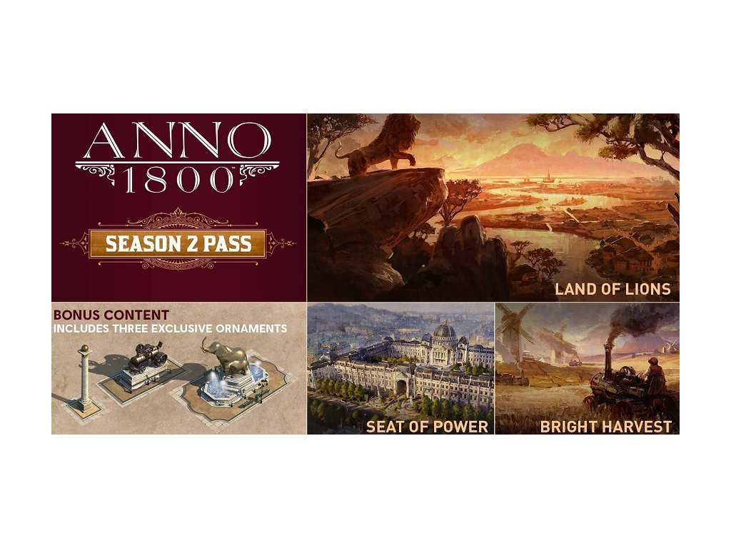 Take the industrial revolution further with the Anno 1800 Season 2 Pass, which includes 3 new DLCs to enhance your gameplay with new buildings, residential tiers and goods :
