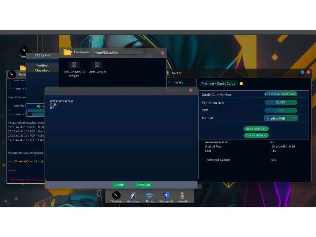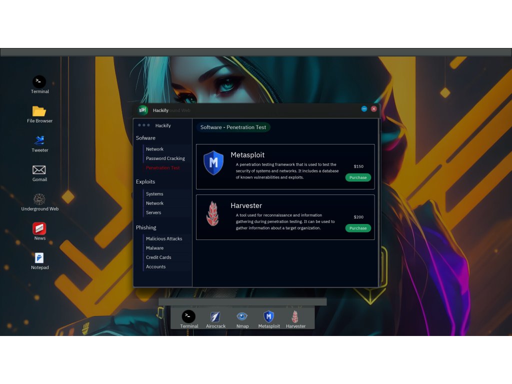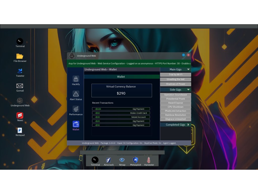 Immerse yourself in a captivating digital world where every keystroke holds the power to unravel the deepest secrets. Begin your journey in the safety of your hidden apartment, equipped with an arsenal of realistic streamlined commands such as Nmap, Harvester, Airocrack, Hping, Burp and more.