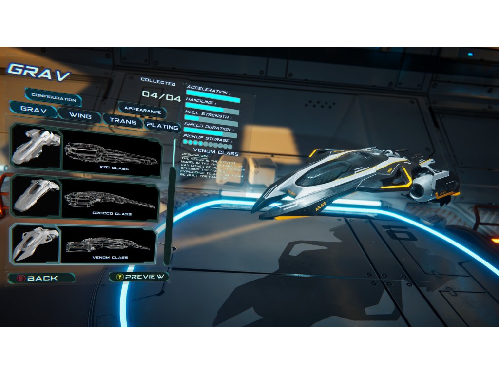 Prepare for some thrilling hi-speed action in the forests of the Orval planet system. Take your new Venom Class Grav for a hair-raising sprint around 3 new tracks, collectively known as the Viper Trails! Tear up the track accompanied by 3 specially composed drum and bass tracks by Alex Meza.