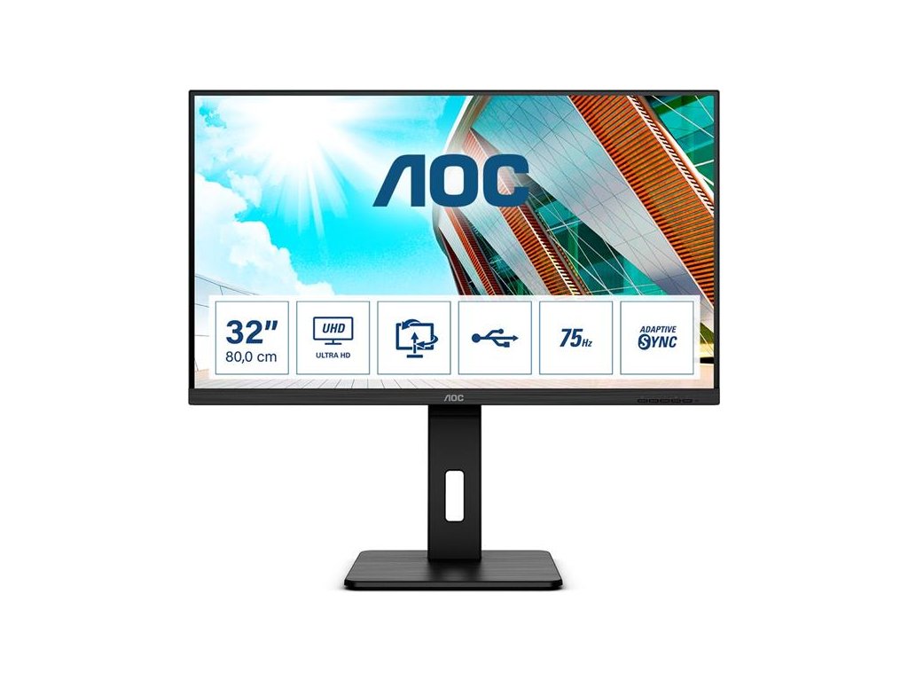AOC U32P2 31.5"W VA LED 3840x2160 50 000 000:1 4ms 350cd DP 2xHDMI pivot repro