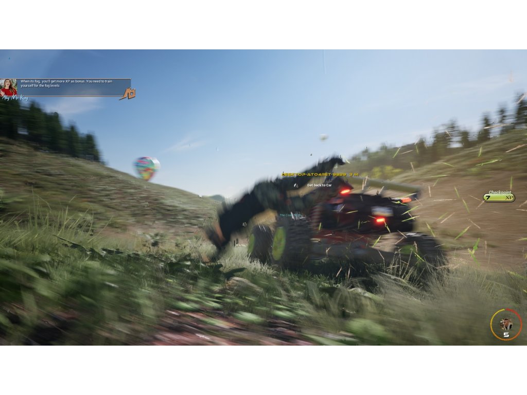 Also, your car is equipped with few ADrones, for evading harsh situations or to circumvent above other cars, when they obstruct your way. Since you need to continue to compete, and there is no time to lose, and you can simply get into drone mode (LB button, if you still have it) and continue toward next checkpoint and respawn the car bellow safe position (LB again). However, both the number of ADrivers out of the car and ADrones are limited, also time outside is ticking, so you need to utilize skills, find, loot and get back close to the car to be able to enter before time expires, or your car will be respawned to the previous checkpoint and you will stay out of the loot.