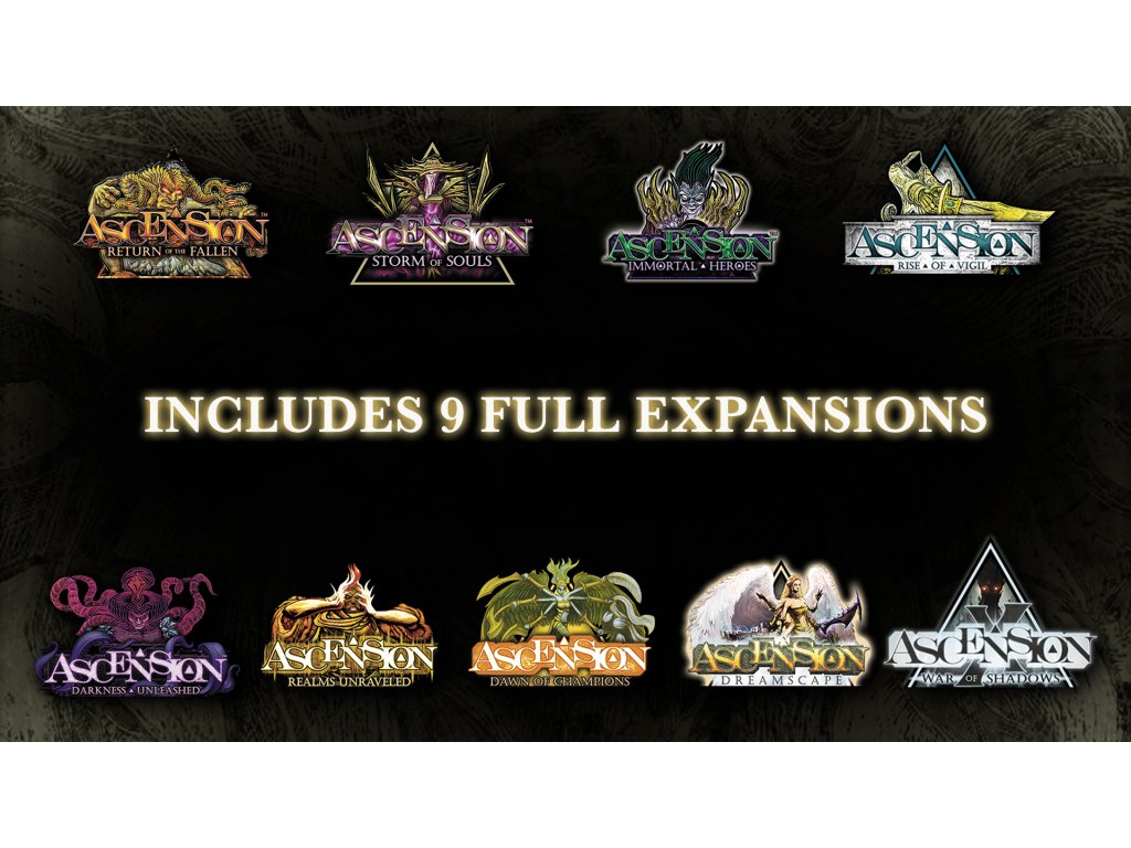 • 9 full expansion decks included: Return of the Fallen, Storm of Souls, Immortal Heroes, Rise of Vigil, Darkness Unleashed, Realms Unraveled, Dawn of Champions, Dreamscape, War of Shadows, and promo card packs #1 to #5 also included!