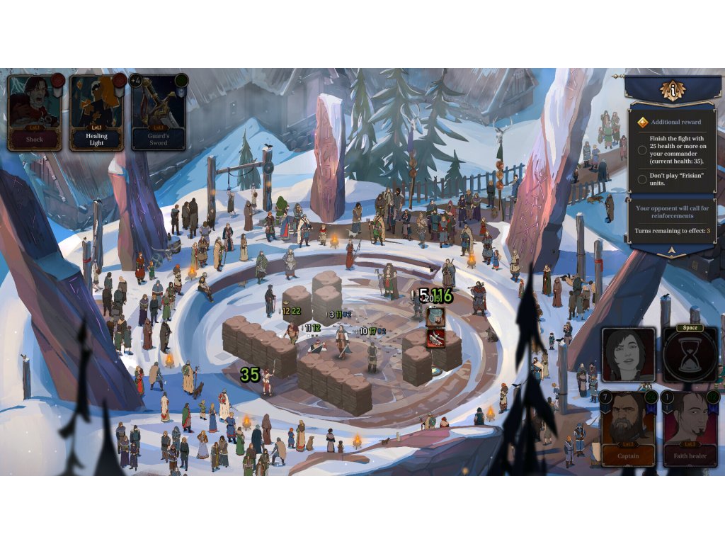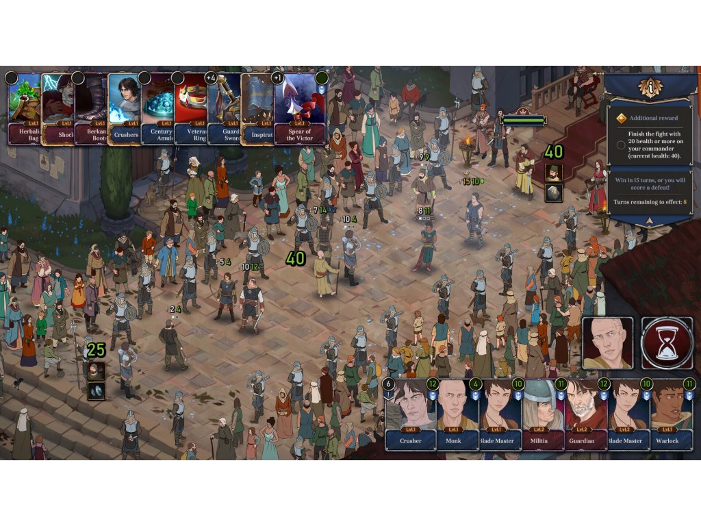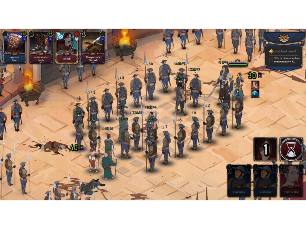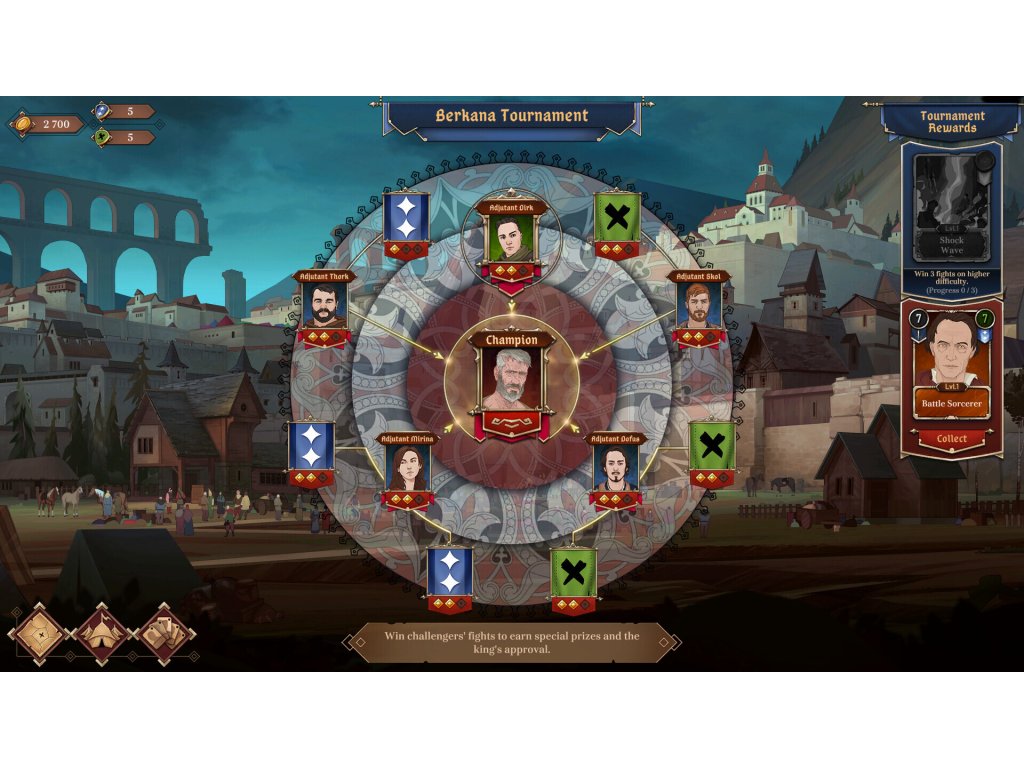 Build winning decks of warriors, equipment, and spells from four different factions in this story-driven tactical card combat game. Battle your way through a series of major tournaments, each with their own opponents, battlefields, and even rules. Earn new cards and upgrade your favorites, then combine them into any number of decks: you’re free to experiment as much as you like! Do prepare carefully for key battles with major characters: you’ll only get a few chances before defeat will change the course of the story, though the game continues…