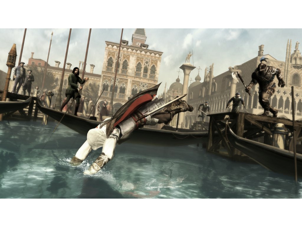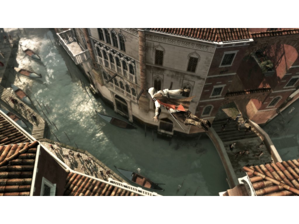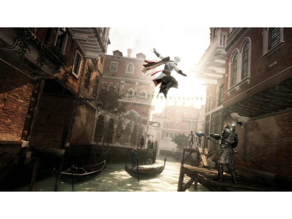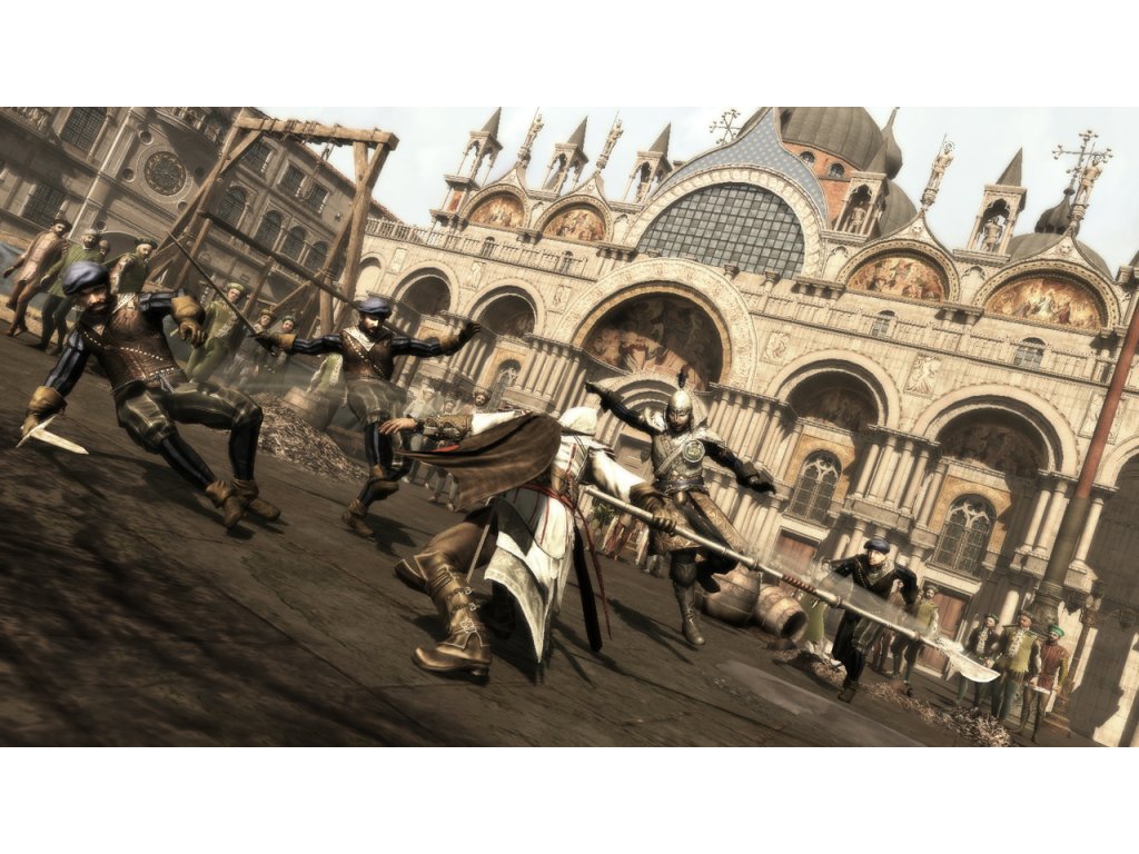 Assassins Creed II is a stealth adventure game taking you to Renaissance Florence, Venice, and Rome open-world. As the next member of the Assassin Order in history, you'll embark on a series of risky missions. Therefore, the gameplay focuses on performing various main and side quests, the outcome of which will determine the fate of your hero. Considering the time the title takes place, you can meet noble figures like Niccolo Machiavelli or Rodrigo Borgia.The flagship part of the series is parkour features performed by the hero for better stealth. Ezio can climb massive buildings, jump from them, run on rooftops and effectively escape all chases. It delivers spectacular effects, allowing the elimination of a large number of enemies by surprise. There is also close combat, during which the hero can use various melee weapons - mainly knives and daggers. The title also introduces the possibility of distracting opponents, blending into the crowd, or using the presence of other characters to your advantage. Your creativity is the only limit! What's more, AC 2 introduces several new features like swimming, a variety of NPCs, even better graphics, and a thrilling music soundtrack.