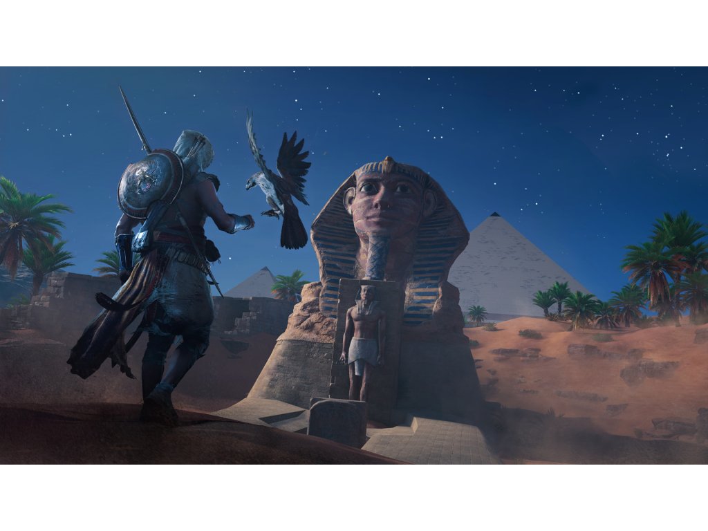 The protagonist of AC: Origins is a man called Bayek, a Medjay hailing from the oasis known as Siwa. He get tangled up in a conflict between Caesar, Cleopatra, and Ptolemy XIII Theos Philopator. Bayek is married to an agent of Cleopatra, Aya, and their relationship is one of the central pieces of the narrative. Among the Medjay's allies is an eagle Senu, serving as his eyes and ears during the game, scouting out the locations and pointing out points of interest, an essential role considering AC:O has no minimap, leaving only a compass to guide you.Release Date: 2017-10-27
