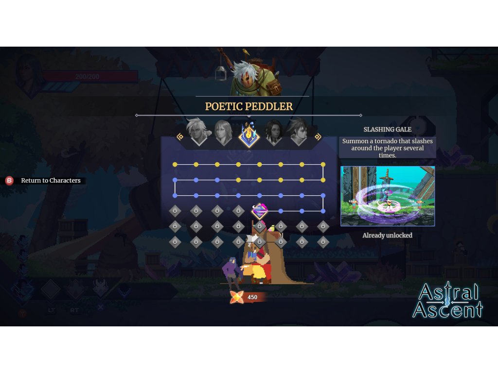 Astral Ascent is a 2D platformer rogue-lite game set in a modern fantasy world. As one of 4 Heroes with very different personalities, you must escape from the Garden, an astral prison guarded by 12 powerful and vicious bosses, the Zodiacs.
