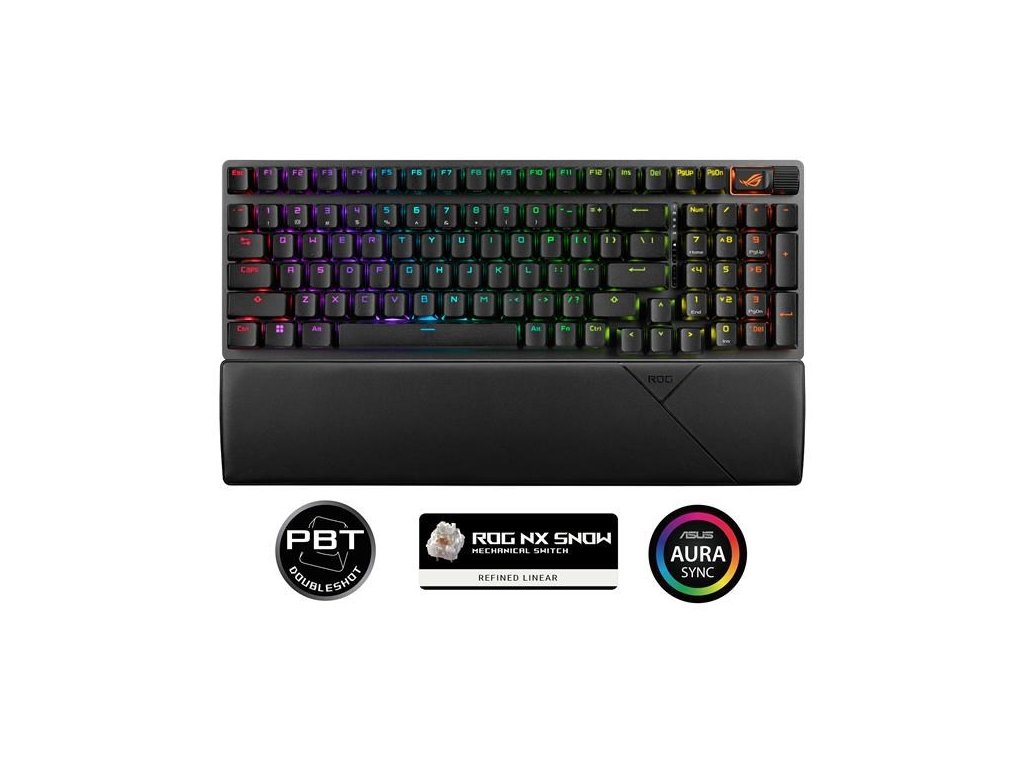 - Pripojenie v troch režimoch: Pripojte pomocou Bluetooth (až tri zariadenia), 2,4 GHz s bezdrôtovou technológiou ROG SpeedNova (az 1500 hodín výdrže batérie) alebo káblového USB prepínača vymeniteľného za behu: Predom namazané lineárne spínače NX Snow so stenovou konštrukciou predstienky, ktorá zvyšuje stabilitu a zabraňuje prenikaniu prachu