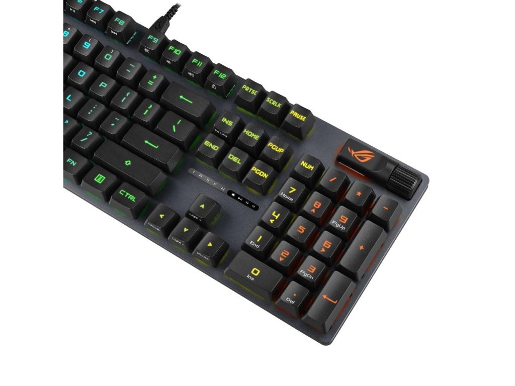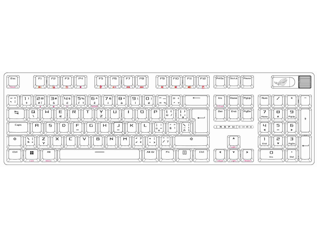 - PBT / ABS klávesy s UV vrstvou: Odolné klávesy ROG PBT doubleshot alebo klávesy ABS s UV vrstvou ponúkajú prvotriedny pocit a odolnosť proti lesku