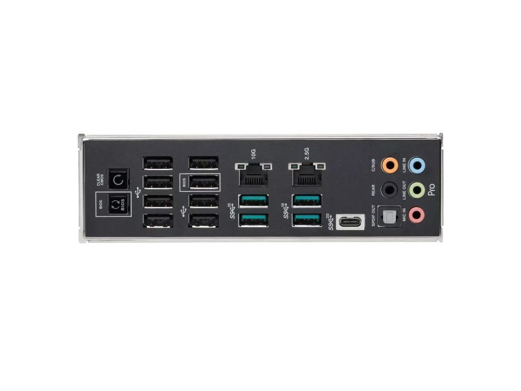 1 x USB 3.2 Gen 2x2 port(y) (1 x USB Type-C) 4 x USB 3.2 Gen 2 port(y) (4 x Type-A) 8 x USB 2.0 port(y) (8 x Type-A) 1 x Marvell AQtion 10Gb Ethernet port 1 x Intel 2.5Gb Ethernet port 5 x zvukové redukcie 1 x optický S/PDIF výstup 1 x tlačidlo BIOS FlashBack™ 1 x tlačidlo na vymazanie CMOS