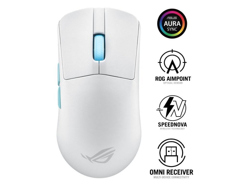 ASUS myš ROG Harpe Ace Aim Lab Edition, Bluetooth, bílá