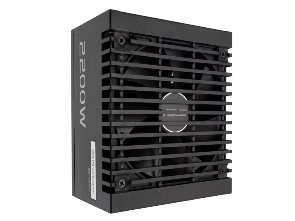 Napájací zdroj ASUS Pro WS 2200W Platinum je navrhnutý tak, aby podporoval až štyri grafické karty GeForce RTX™ 5080. Disponuje tiež certifikáciou 80 PLUS Platinum, vysoko výkonnými medenými päticami, ložiskami ventilátora s dvojitými guľkami, leptanými káblami, pevnou stabilitou napätia a pokročilým napájaním, čo z neho robí ideálnu voľbu pre riešenia AI, hlboké učenie a správu IT.