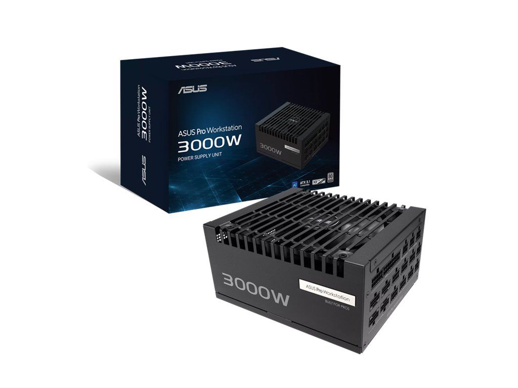 Parametry: Model: ASUS-PRO-WS-3000P Standard napájení (form factor): ATX12V Typ PFC: Aktivní PFC (Active PFC) Standard ATX: ATX 3.1 Rozměry: 175 × 150 × 86 mm Účinnost: 80 PLUS Platinum