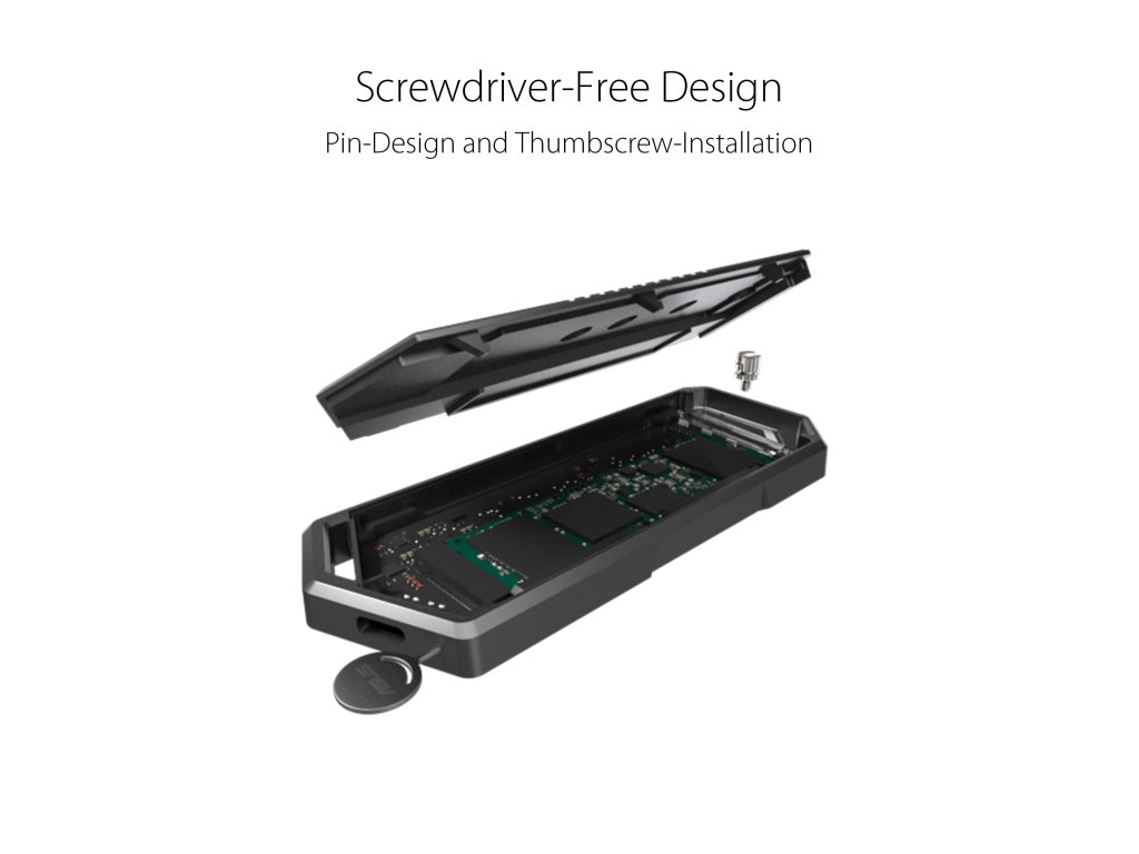 Box na externé disky M.2 NVMe SSD ROG Strix Arion - USB 3.2 GEN2 Type-C (10 Gb/s), dva káble USB-C do USB-C a USB-A, inštalácia bez použitia skrutkovača, obsahuje chladovacie podložky, vhodný pre PCIe 2280/2260/2242/2230 M key/B+M Key