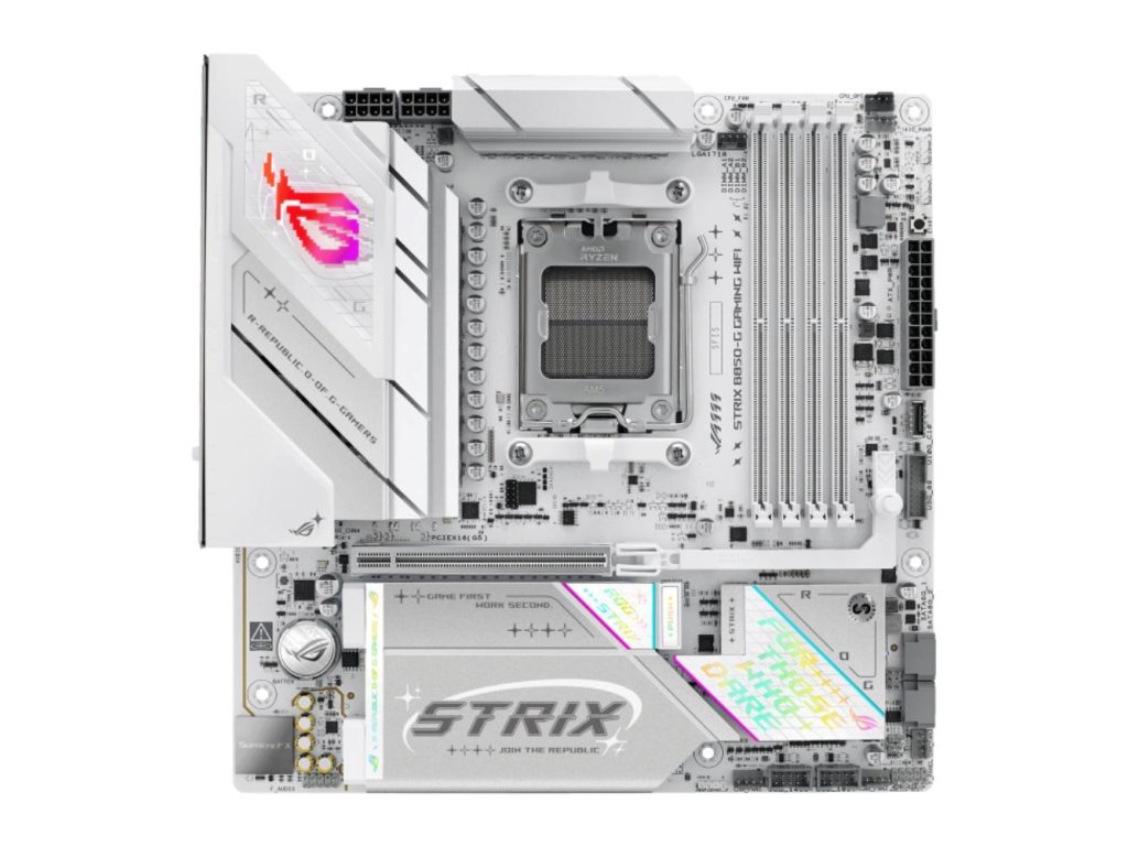 Uvolnite výkon ďalšej generácie s ROG Strix B850-G Gaming WiFi. Vyrobená s elegantnou bielou PCB a podporou pre procesory AMD Ryzen™ 9000 Series a najmodernejšiu DDR5 pamäť, táto základná doska je vybavená na top úroveň hrania hier. PCIe 5.0, USB 20Gbps Type-C a WiFi 7 zabezpečujú bezkonkurenčnú rýchlosť a výkon.