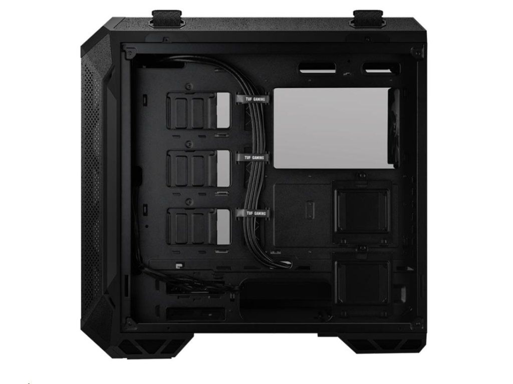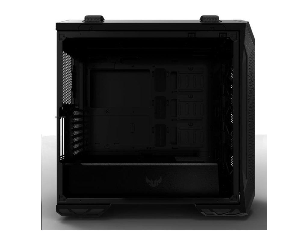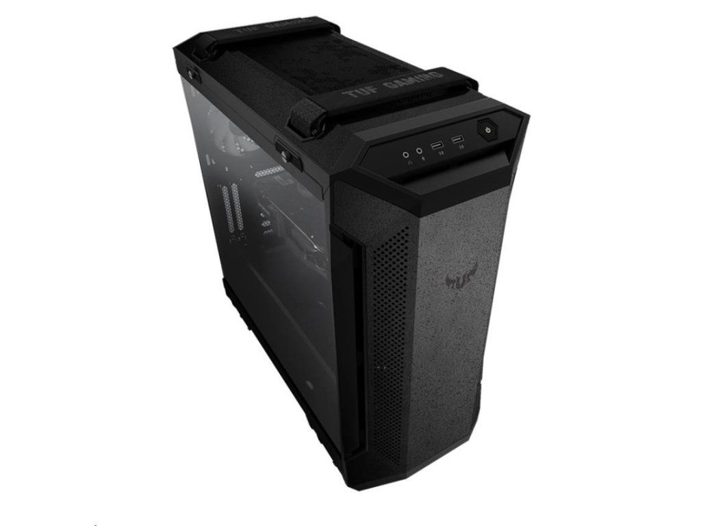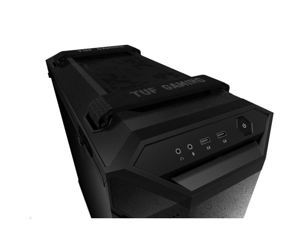 - Navrhnutý tak, aby si ho všimli: Kovový predný panel s vlastným vzorom TUF Gaming a 4 mm hrubý bočný panel z dymového temperovaného skla, ktorý ukazuje vnútorné prvky vašej zostavy.