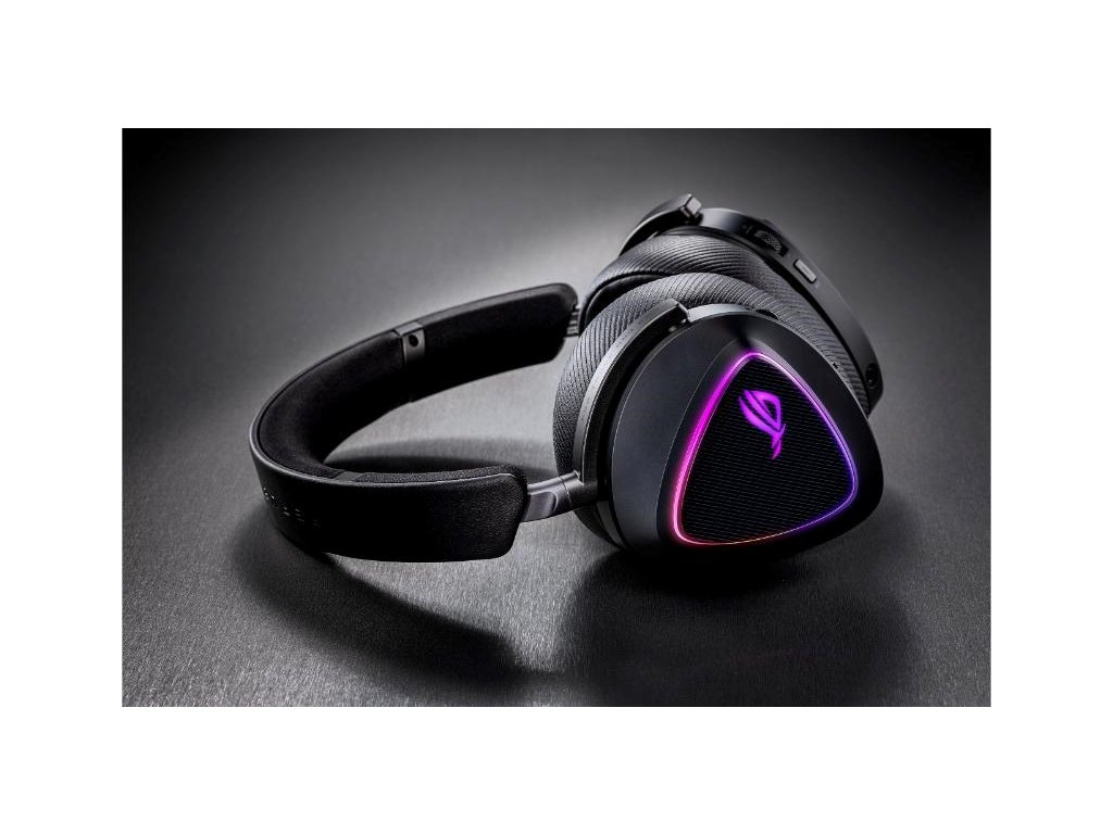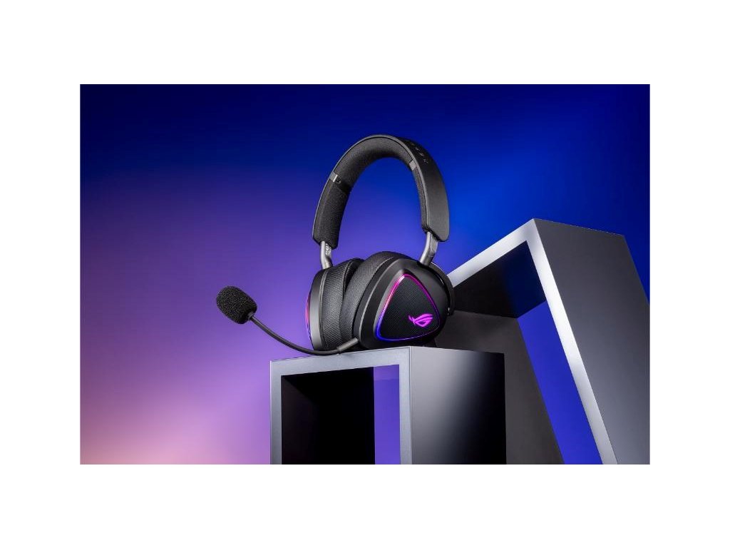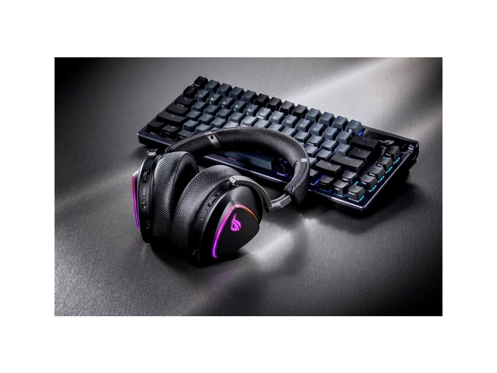 Bezdrôtová herná náhlavná súprava v troch režimoch s ROG SpeedNova, 50mm drivery s titanovou membránou a vyladeným zvukom, 10mm super širokopásmový mikrofón, DualFlow Audio, výdrž batérie až 110 hodín, ľahký dizajn 318 g, plus RGB osvetlenie ASUS Aura Sync