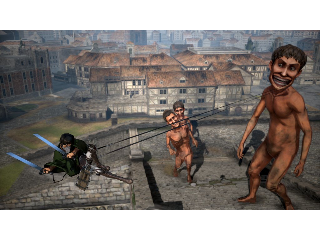The plot is largely based on the first series of anime and manga Attack on Titan with well-known characters from the book appearing in the video game. However, some new scenarios involving characters from manga are included in the game. The story starts in a dark and unpleasant post-apocalyptic world, where humans fight for survival against gigantic Titans. People hide in cities that are closed within with very high walls. In 845 the Colossal Titan appeared and breached the Wall, making an entrance for other Titans. Little Eren was just 10 years old back then. His mother was killed by a titan. Wall Maria, where he used to live, was abandoned and now the Armored Titan is guarding the access to it.People moved to Wall Rose. Little Eren grew up and was seeking revenge for losing his mother and hometown.