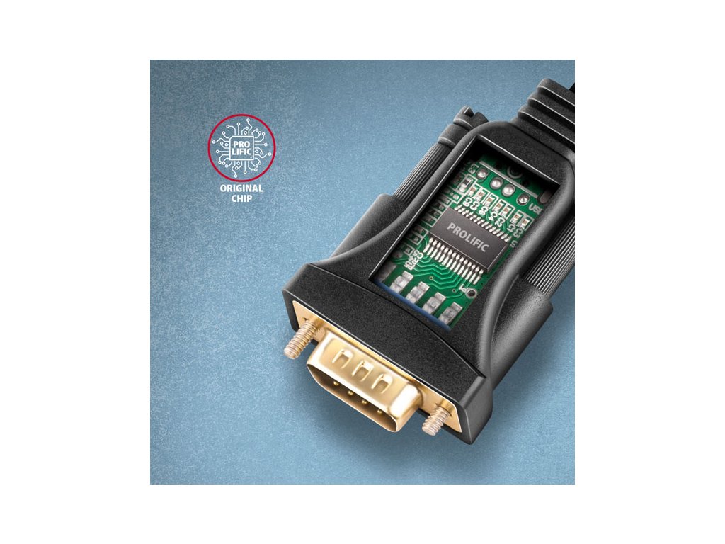 • Použitá originálna čipová sada Prolific PL2303GT s integrovaným ovládačom sériovej linky.