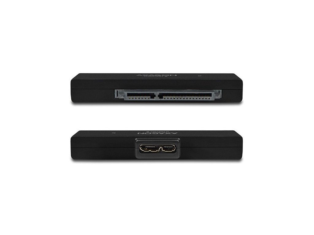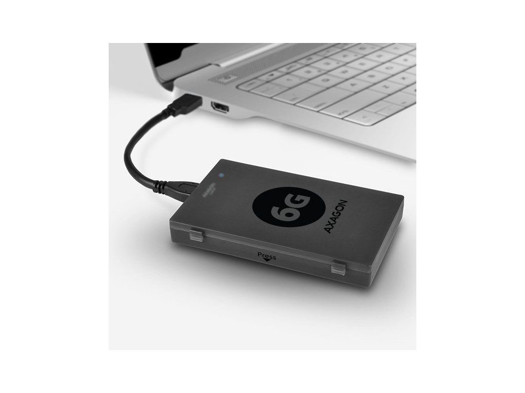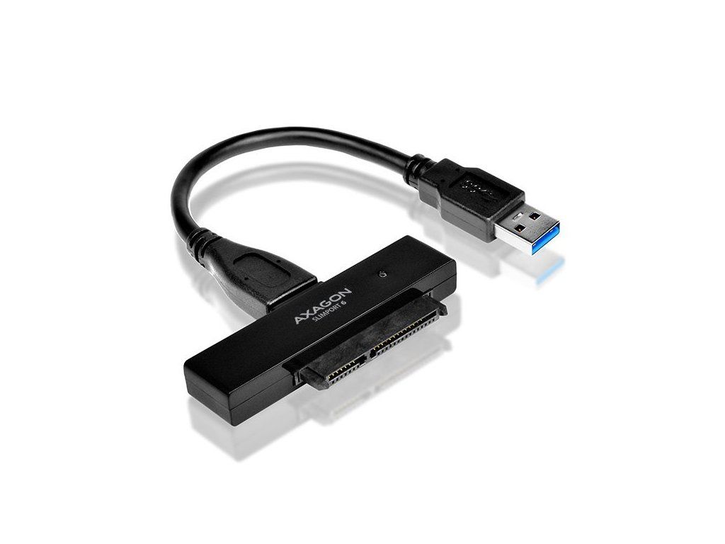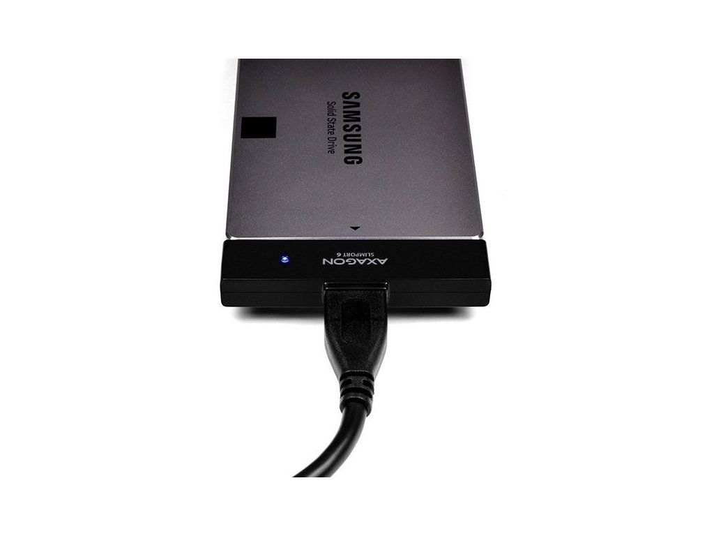 Kompaktný vysokorýchlostný adaptér AXAGON ADSA-1S6 SLIMport6 ??s USB 3.0 a SATA 6G rozhraním určený pre jednoduché pripojenie SSD alebo 2.5" SATA disku. Šikovný pomocník pre rýchle pripojenie SSD alebo notebookového disku vrátane podpory bootovanie. Podpora UASP podstatne zvyšuje prenosové rýchlosti najmä pri práci s malými súbormi vo fronte. Podpora funkcie TRIM pre obmedzenie pozvoľné degradácie výkonu SSD v čase. Čítanie S.M.A.R.T. informácií monitorujúcich kondíciu pripojených diskov. Podpora vypínanie disku po odobratí zariadení alebo uspanie PC. Inštaláciu zvládne aj úplný laik - disk sa pripojí k adaptéru a adaptér do USB portu počítača, zvyšok prebehne automaticky. Minimálne rozmery a hmotnosť spoločne s priloženým puzdrom pre disk predurčujú produkt aj pre mobilné použitie. Vlastnosti: • Kompatibilný s USB 3.0, spätne kompatibilný s USB 2.0. • Podpora prenosových rýchlostí 12 / 480 / 5000 Mbit/s (full / high / super speed). • Podpora 2.5 "SATA III/II/I diskov všetkých kapacít. • Vyhovuje Serial ATA 3.1 špecifikácii (SATA/600), prenosové rýchlosti až 6 Gb/s (600 MB/s). • Vyhovuje Serial ATA 2.0 špecifikácii (SATA/300), prenosové rýchlosti až 3 Gb/s (300 MB/s). • Vyhovuje Serial ATA 1.0 špecifikácii (SATA/150), prenosové rýchlosti až 1.5 Gb/s (150 MB/s). • Celková priepustnosť / prenosová rýchlosť adaptéra je daná použitým USB 3.0 rozhraním (teor. 5 Gbit/s). • Podpora UASP (USB Attached SCSI Protocol) a BOT (Bulk-Only Transport). • Podpora bootovanie z SSD/HDD pripojeného cez USB adaptér. • HDD Turn Off - vypnutie disku po odobratí zariadení alebo uspanie PC. • Možnosť pripojenia zariadenia za chodu vďaka podpore Hot Plug. • Plná podpora Plug and Play. • Pripojenie cez USB 3.0 micro B female konektor. • USB 3.0 kábel USB 3.0 type A male / USB 3.0 micro B male dĺžky 10 cm súčasťou balenia. • Napájanie po USB 3.0 zbernici až 900mA z jedného USB portu úplne dostačuje vo všetkých prípadoch. • Modrá LED dióda indikujúca pripojenie k USB portu počítača (trvalým svitom) a prenos dát (blikaním). • Kompaktné rozmery adaptéra 70 x 21 x 10 mm. • Hmotnosť adaptéra iba 11 g, hmotnosť USB kábla 18 g. • Jednoduché plastové puzdro pojme 2.5" disk výšky max. 9.5mm s pripojeným USB adaptérom (USB kábel je vyvedený otvorom v puzdre). • Pre tenké 7mm SSD/HDD pribalené penové vypchávky pre lepšie upevnenie v puzdre. • Puzdro môže slúžiť aj pre transport alebo úschovu samotného adaptéra bez disku vrátane USB kábla vo vnútri puzdra. • Rozmery puzdra 122 x 78 x 19 mm. • Hmotnosť puzdra 40 g. Podporované OS: MS Windows XP / Vista / 7 / 8 / 8.1 / 10 a novšie, Windows Server 2003 / 2008 / 2012 / 2016 a novšie (podporované všetky 32- i 64-bitové verzie OS Windows), Mac OS X 10.x a vyšší, Linux s jadrom 2.6.x a vyšším. Pozn.: Ovládače sú súčasťou podporovaných operačných systémov a nainštalujú sa úplne automaticky. Žiadne iné ovládače nie je potrebné inštalovať a nie sú ani k dispozícii. Balenie obsahuje: • USB 3.0 - SATA 6G adaptér, • USB 3.0 kábel dĺžky 10 cm, • plastové puzdro pre 2.5" disk a USB adaptér, • penové vypchávky pre 7 mm HDD a SSD, • balené v kartónovej škatuľke s postupom inštalácie.Dodatočné parametre