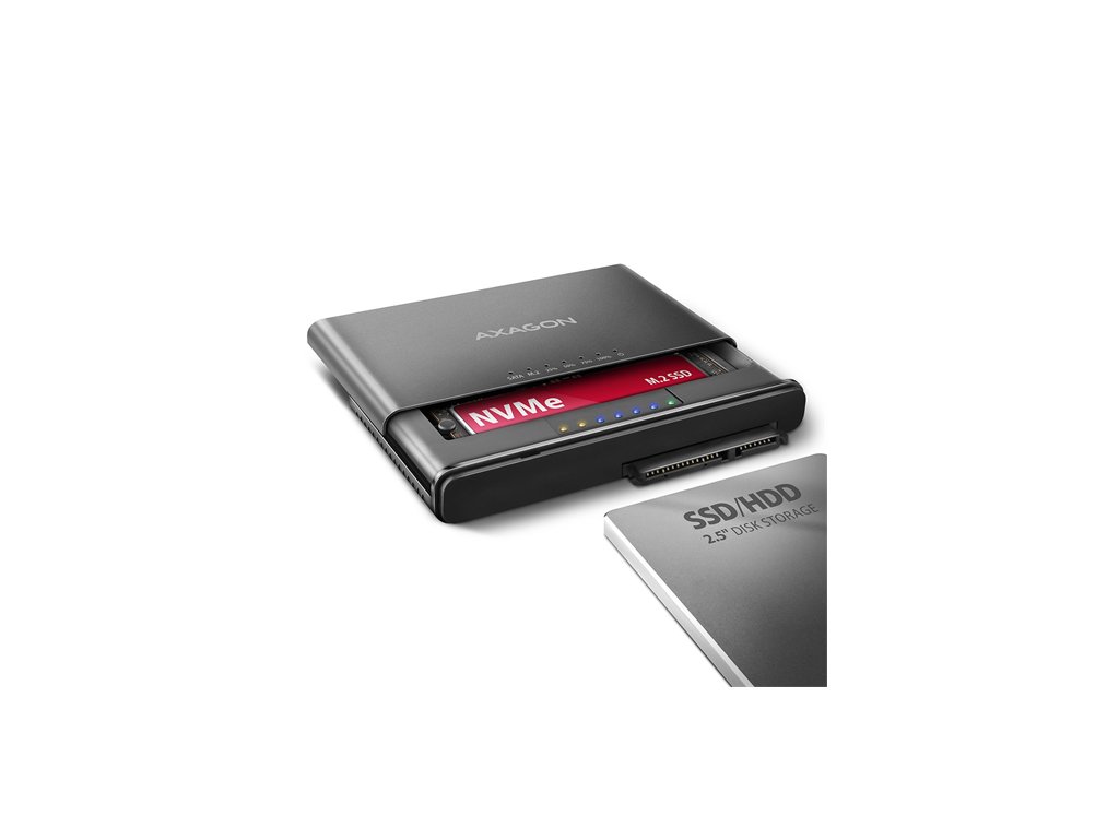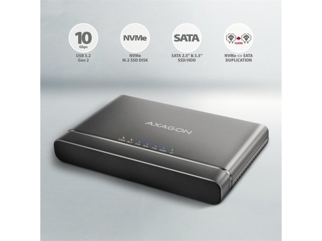 AXAGON ADSA-CC USB-C 10Gbps - NVMe M.2 SSD & SATA 2.5"/3.5" SSD/HDD CLONE MASTER 2 adaptér