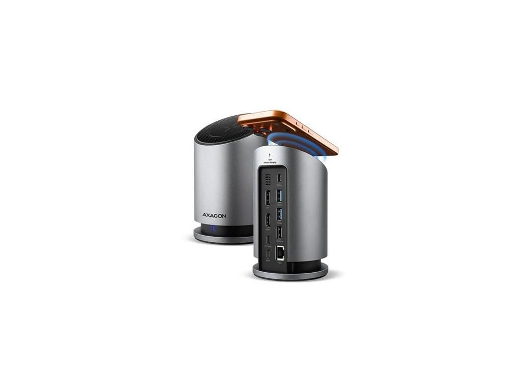 Multiportový USB-C 10Gbps AXAGON HMC-WL9 WIRELESS CHARGING 9in1 hub rozšíří váš notebook, počítač nebo telefon o dva video výstupy, LAN konektor, USB porty a bezdrátovou nabíječku. Váš notebook připojíte k hubu přes 60 cm dlouhý USB-C kabel. Okamžitě tak máte k dispozici připojení pro dva 4K monitory, čtyři USB zařízení a konektor RJ-45 pro Gigabitovou Ethernet síť. Zároveň získáte možnost napájení notebooku pomocí technologie Power Delivery. Díky kompatibilitě s rozhraním Thunderbolt 3/4/5 můžete dokovací stanici 9v1 použít i s notebooky, jako jsou například Apple MacBook Air nebo MacBook Pro. Bezdrátové nabíjení pro mobilní telefony s výkonem až 15 W je integrováno přímo do těla hubu. Díky magnetickému systému uchycení stačí telefon jednoduše přiložit – automaticky se vyrovná do optimální pozice. Nabíjení je tak maximálně efektivní, bezpečné a pohodlné. Samozřejmostí je kompatibilita se standardy Qi1, Qi2 a MagSafe. Pro dosažení maximálního výkonu bezdrátového nabíjení je nutné použít 100 W PD nabíjecí adaptér. Technologie bezdrátového nabíjení je kompatibilní se širokou škálou zařízení, například Apple iPhone, Samsung, Google Pixel, Xiaomi, Nothing Phone, stejně jako s modely značek OnePlus, Huawei, Motorola a dalších. Díky univerzálnímu standardu Qi lze snadno nabíjet i starší modely s nižším výkonem. USB rozbočovač se 4 USB porty nabízí vysokorychlostní připojení – dva USB-A a jeden USB-C s rychlostí až 10 Gbps pro rychlý přenos dat a jeden USB-A 480 Mbps ideální pro klávesnici či myš. Díky USB 3.2 Gen 2 rozhraní je přenosová rychlost hubu až 10 Gb/s. Hub zvládne trvalé připojení několika externích disků současně. USB-C vstup (PD) je určen pro Power Delivery nabíječku. Díky tomu je jak notebook, tak i dock, napájen přímo z PD nabíječky s využitím technologie Power Delivery 3.0 s výkonem až do 100 W. Dva video výstupy – HDMI a DisplayPort umožňují připojení externích monitorů, TV nebo projektorů s rozlišením až 4K/60Hz Ultra HD při zapojení dvou monitorů najednou. Podporována jsou také další rozlišení, například 2K/120Hz Quad HD nebo 1080p/240Hz Full HD a přenos vícekanálového zvuku přes HDMI. Díky podpoře HDR si můžete vychutnat výrazně rozšířený rozsah barev a kontrastů. Gigabitová síťová karta rozšíří počítač o rychlé a stabilní síťové připojení, doplní chybějící síťový RJ-45 Ethernet konektor, nebo přidá další síťovou kartu. Hliníkové tělo nejen skvěle vypadá, ale zajistí i mechanickou odolnost a pasivní chlazení. Díky gumové podložce na podstavci zůstane stanice pevně na svém místě. USB-C hub je ideálním doplňkem pro notebooky bez USB-A konektorů a video výstupu. Díky funkcím Plug & Play a Hot Plug je samotné zapojení hubu velmi jednoduché bez složité instalace, a také lze jednoduše připojovat a odpojovat periferie za běhu počítače. Pro správnou funkci hubu je nutné, aby USB-C port vašeho notebooku podporoval video výstup (DisplayPort Alternate Mode nebo Thunderbolt 3 a vyšší) a Power Delivery napájení. Rozbočovač bez problému zvládne připojení k telefonům a tabletům s USB-C konektorem. K telefonu tak můžete připojit například flash disk, klávesnici, myš, monitor, televizi nebo projektor. Vstup (připojení k počítači, tabletu nebo telefonu): • USB 10Gbps (USB 3.2 Gen 2), konektor USB-C male. • Kompatibilní s USB 5Gbps, USB 20Gbps, USB 40Gbps, Thunderbolt 3/4/5. Vstup (napájení): • USB Power Delivery 3.0 – 100 W port, konektor USB-C female. • Napájení notebooku ze síťového adaptéru přes USB-C hub. • Napájení PD musí podporovat jak notebook (tablet, telefon), kabel, tak síťová nabíječka. Bezdrátové nabíjení: • Podpora 5 W, 7.5 W, 10 W a 15 W bezdrátového nabíjení. • Kompatibilní s technologiemi Qi1, Qi2 a Apple MagSafe. • Podpora magnetického zarovnání pro efektivní nabíjení. • Pro dosažení maximálního výkonu bezdrátového nabíjení je nutné použít 100 W PD nabíjecí adaptér. Příklady kompatibilních telefonů s bezdrátovým nabíjením Qi1 a Qi2: • Apple iPhone: Kompatibilní s modely iPhone 8 až 17, včetně řad iPhone X, 11, 12, 13, 14, 15, 16 a 17 a všech variant mini, Plus, Air, Pro a Pro Max. • Samsung Galaxy: Kompatibilní s modely Samsung Galaxy S8 až S25, včetně řad S, S+, S Ultra, Z Flip (Flip3–Flip6) a Z Fold (Fold3–Fold6). • Google Pixel: Kompatibilní s modely Google Pixel 4 až 10, včetně řad Pixel 4 XL, 6 Pro, 7 Pro, 8 Pro, 9 Pro, 10 Pro a Pixel Fold. • Poznámka: Pro dosažení nejvyšší rychlosti nabíjení je potřeba telefon správně vycentrovat. Díky magnetickému kroužku v zařízení nebo jeho pouzdře se smartphone snadno sám zarovná do optimální pozice. Výstupy USB: • 1× USB 480Mbps port, konektor USB-A female. • 2× USB 10Gbps port, konektor USB-A female. • 1× USB 10Gbps port, konektor USB-C female. • USB-C hub zvládne připojení několika externích disků současně. • Nabíjení mobilních zařízení (včetně iPad) z USB-A a USB-C portů hubu. Výstup video: • 1× DP port, konektor DP female. • 1× HDMI port, konektor HDMI A female. Maximální podporované rozlišení: • 1 monitor (DP) - až 8K/30Hz Ultra HD, 4K/60Hz Ultra HD, 2K/120Hz Quad HD, 1080p/240Hz Full HD. • 1 monitor (HDMI) - až 4K/60Hz Ultra HD, 2K/120Hz Quad HD, 1080p/240Hz Full HD. • 2 monitory (DP + HDMI) - až 4K/60Hz Ultra HD, 2K/120Hz Quad HD, 1080p/240Hz Full HD. Vlastnosti videa: • U zařízení Apple s macOS je maximální obnovovací frekvence většinou omezena na 60 Hz. • Pro dosažení maximálních hodnot rozlišení a frekvencí na video výstupech je nutné hub zapojit do USB-C portu s podporou DisplayPort Alternate Mode (DP Alt Mode) verze min. 
