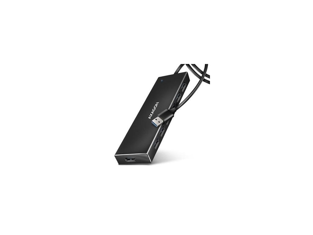 AXAGON HUE-F7A, 7x USB 3.2 Gen 1 ALU FLAT CHARGING hub, micro USB napájecí konektor, kabel USB-A 1m