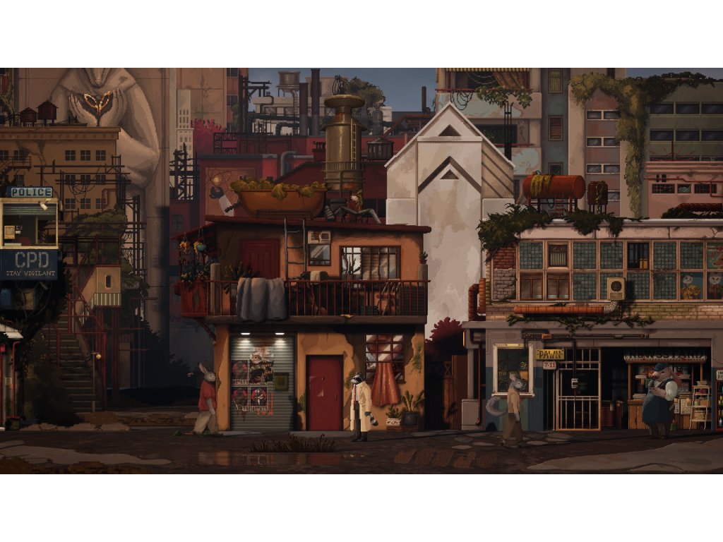 Backbone is a 2D adventure game developed by EggNut and released by Raw Fury Games in 2021. In this film noir-inspired story, you will explore a dystopian version of Vancouver as one of the anthropomorphic heroes struggling with the hardships of everyday life.