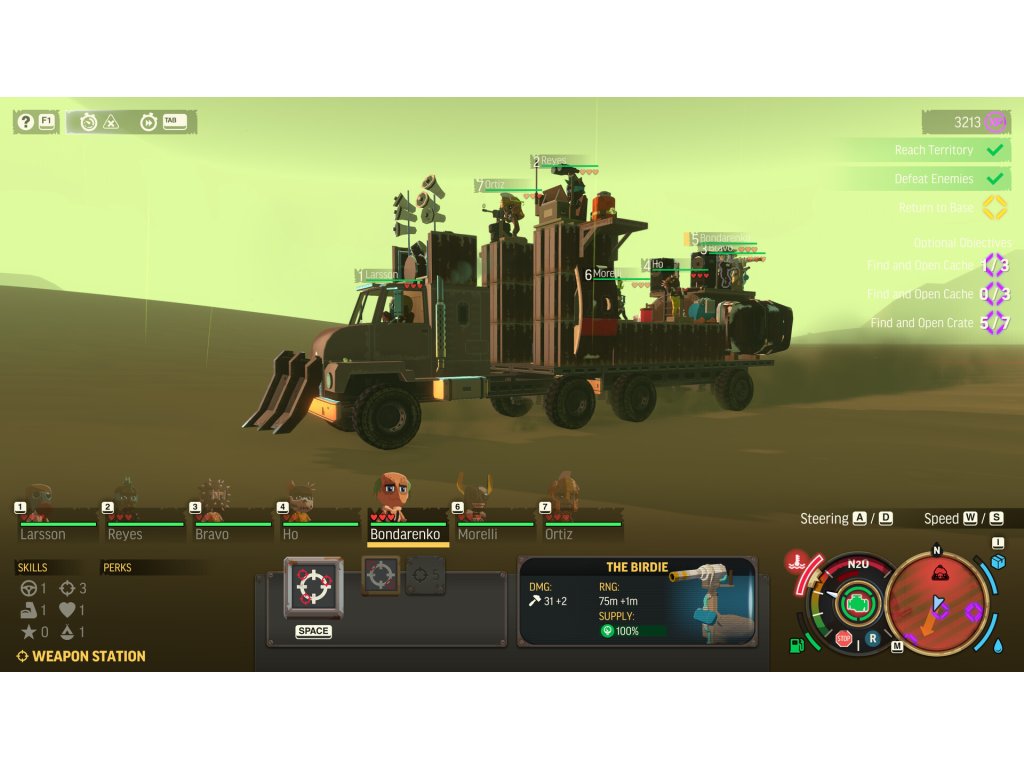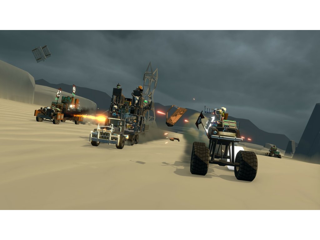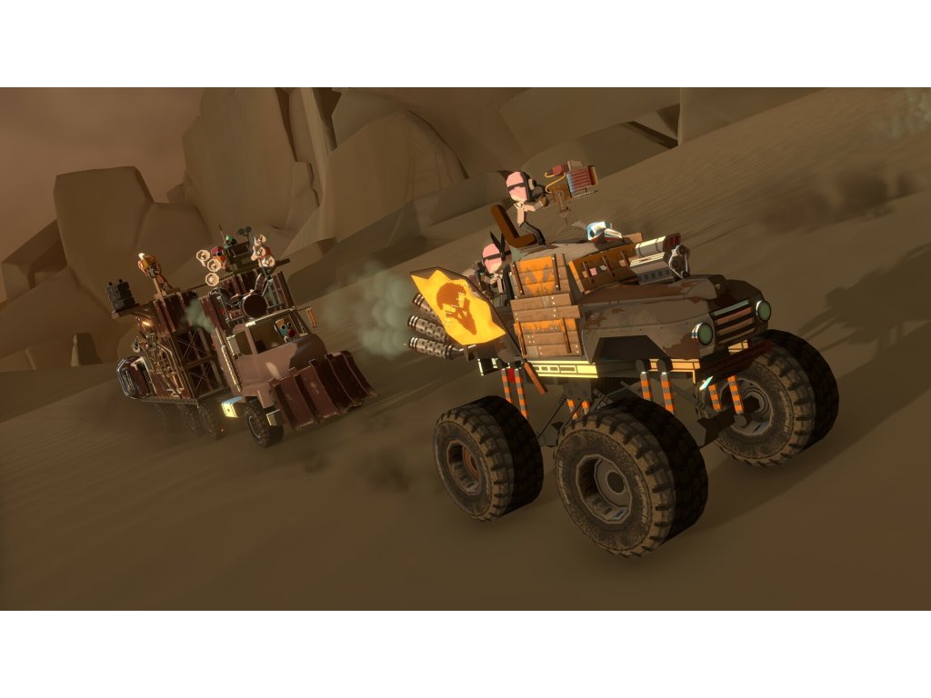 Combat will require you to multitask under pressure! While out on a mission, you must strategize and manage your crew members efficiently to man guns, repair your rig, heal injured crew mates and more. All whilst you drive and navigate environmental hazards and gigantic sandworms.