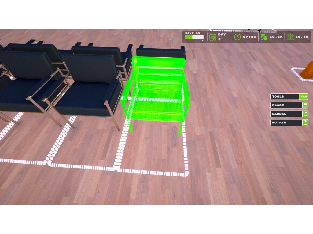 - Market: Buy office items, equipment, and decorations to expand your bank.