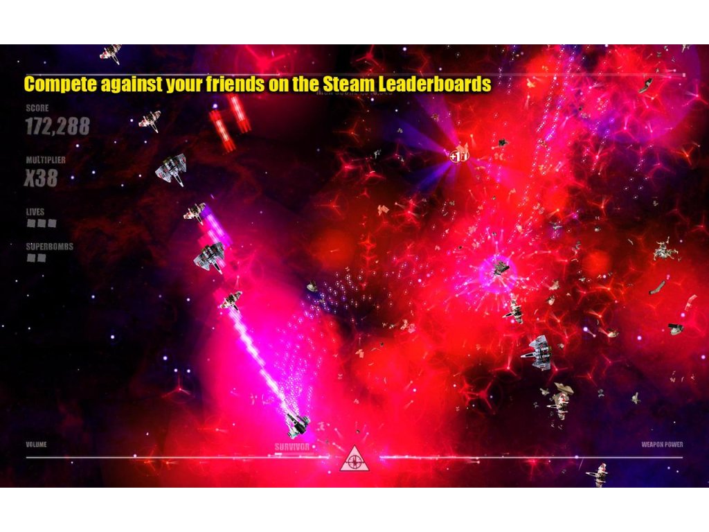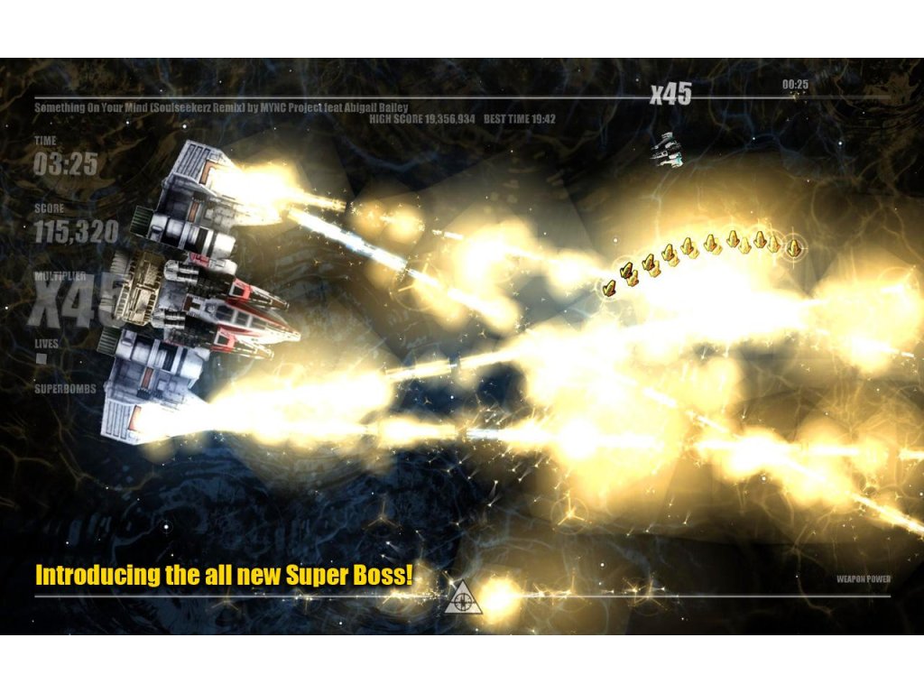 Power up your spaceship and watch as the music boosts your firepower. Unleash hell on the enemy ships when you max out with weapon pickups!