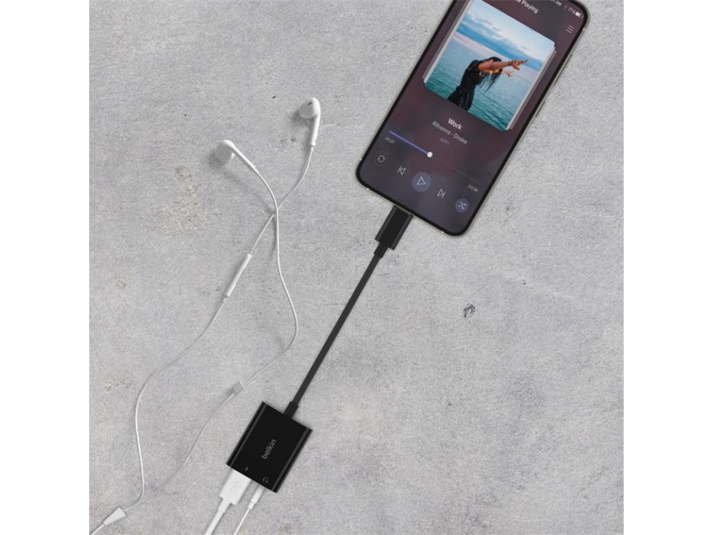 Belkin RockStar 3.5mm Audio + USB-C Charge Adapter - Black