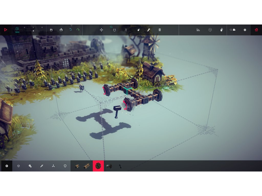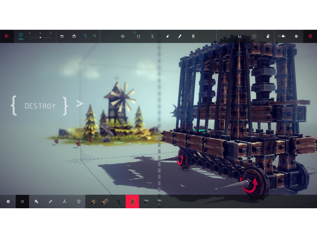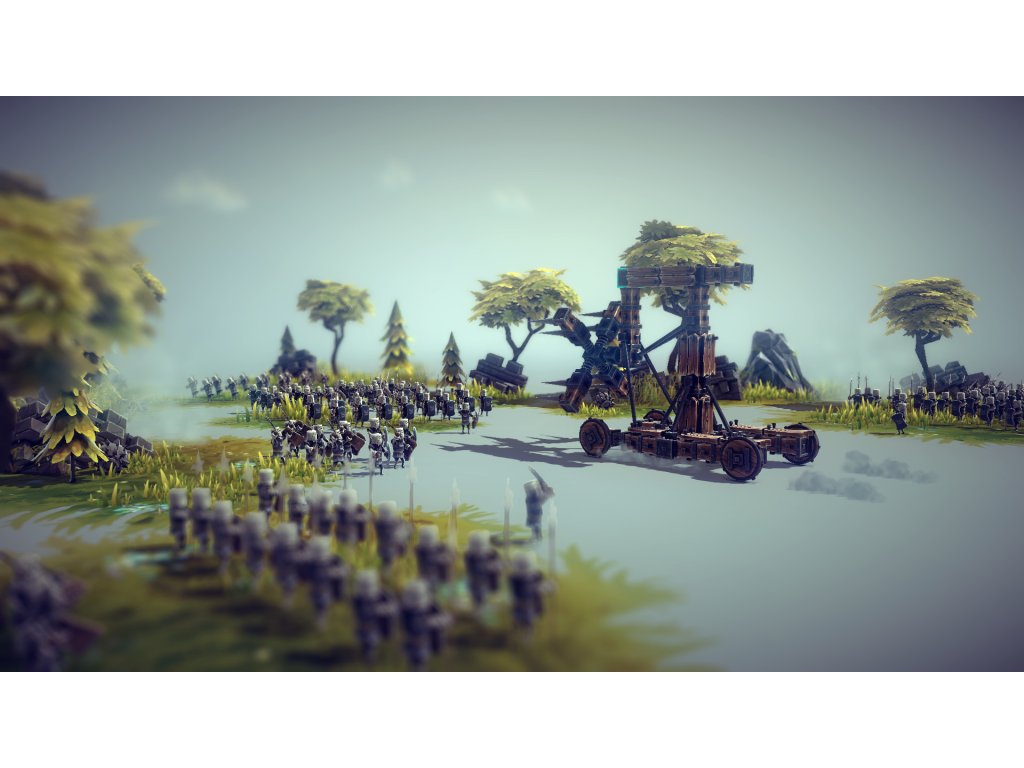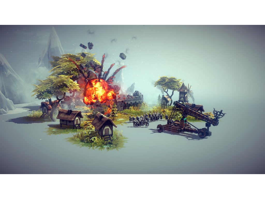 Besiege is a physics based building game in which you construct medieval siege engines and lay waste to immense fortresses and peaceful hamlets. Build a machine which can crush windmills, wipe out battalions of brave soldiers and transport valuable resources, defending your creation against cannons, archers and whatever else the desperate enemies have at their disposal. Create a trundling behemoth, or take clumsily to the skies, and cause carnage in fully destructible environments. Ultimately, you must conquer every Kingdom by crippling their castles and annihilating their men and livestock, in as creative or clinical a manner as possible!