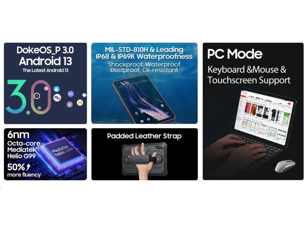 Pevná konštrukcia tlmí nárazy a zaručuje bezpečnosť tabletu Blackview Active 8 Pro zo všetkých uhlov.