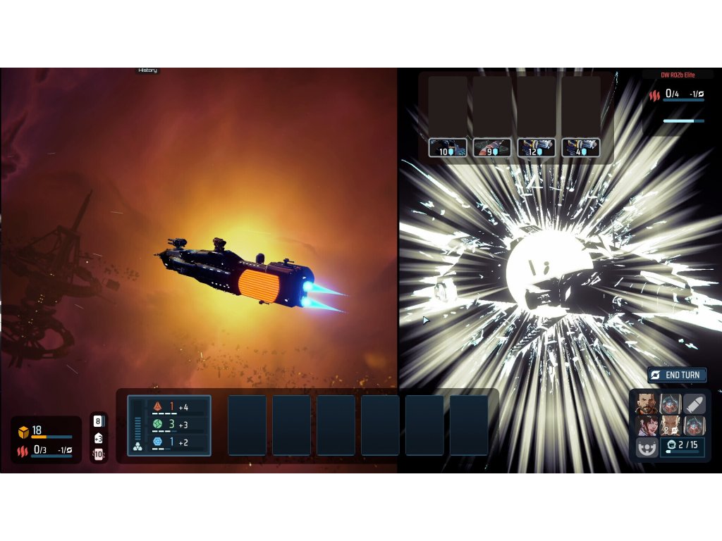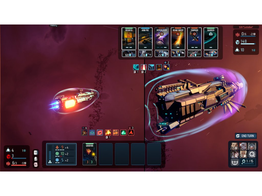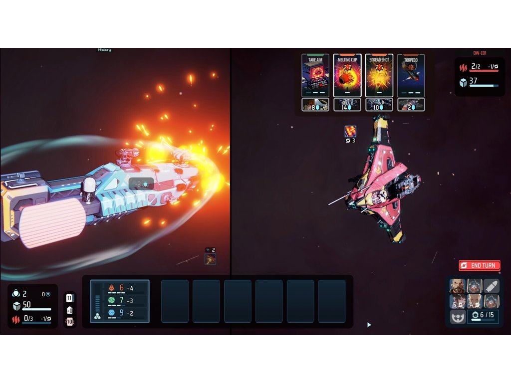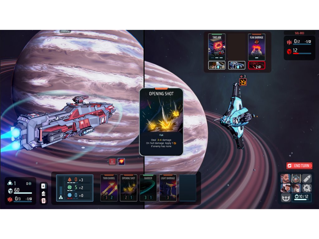 Your sensors will pick up on enemy activity, letting you know what to expect when they strike. Calculate cooldown times and strategize around enemy equipment that poses the greatest threat to you in upcoming turns. Will you prioritize disabling specific equipment with focused fire, or will you instead rely on using defensive countermeasures to stand your ground as you burn past enemy shields and punch through their hulls? Not all equipment is created equal, and your options are determined by the unique capabilities of your loadout, and the resulting cards at hand.