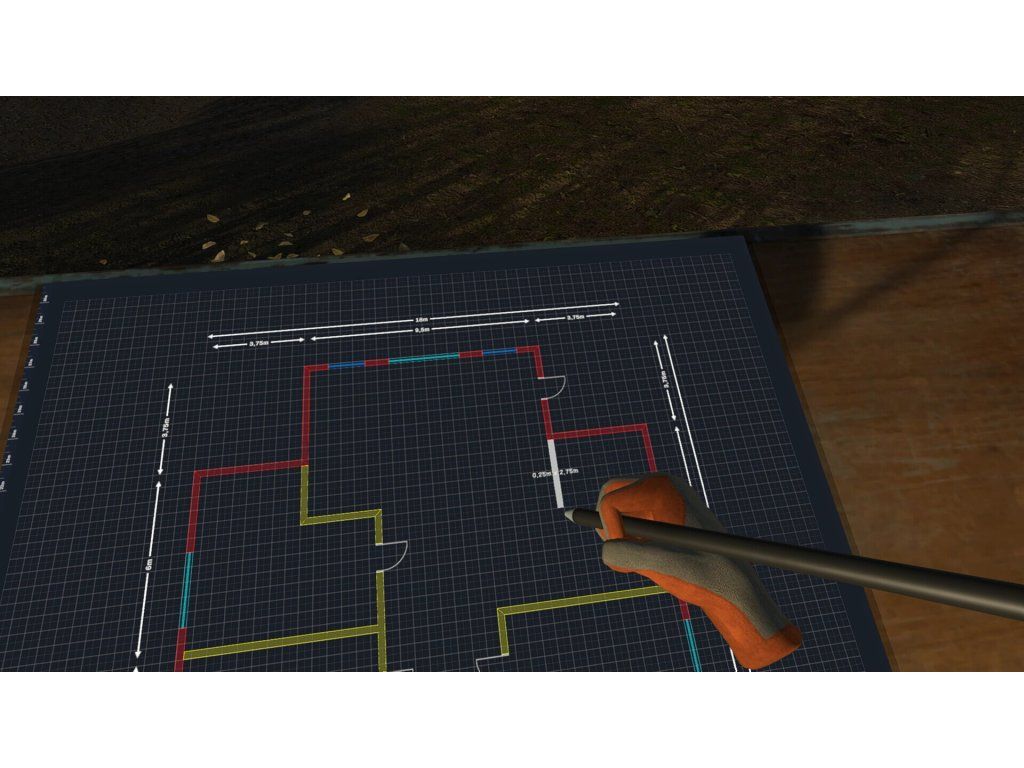 Before you start working on your house, try to design it first. You'll begin by preparing a design on a drafting board. Curved lines, straight lines, whatever you want - it's all up to you. The only thing that may limit you is your imagination. So show off the creativity that virtual reality gives you and create a design like the world has never seen before. Take on the challenge!