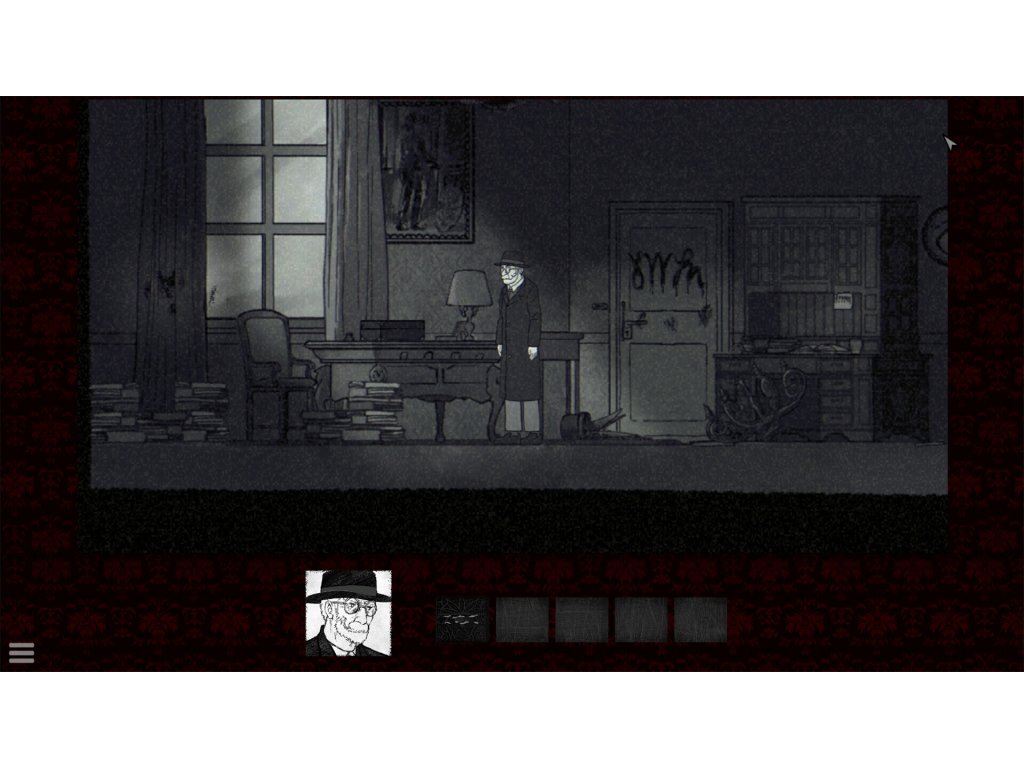 - Black and white hand-painted art, set in the 70s of a parallel universe.